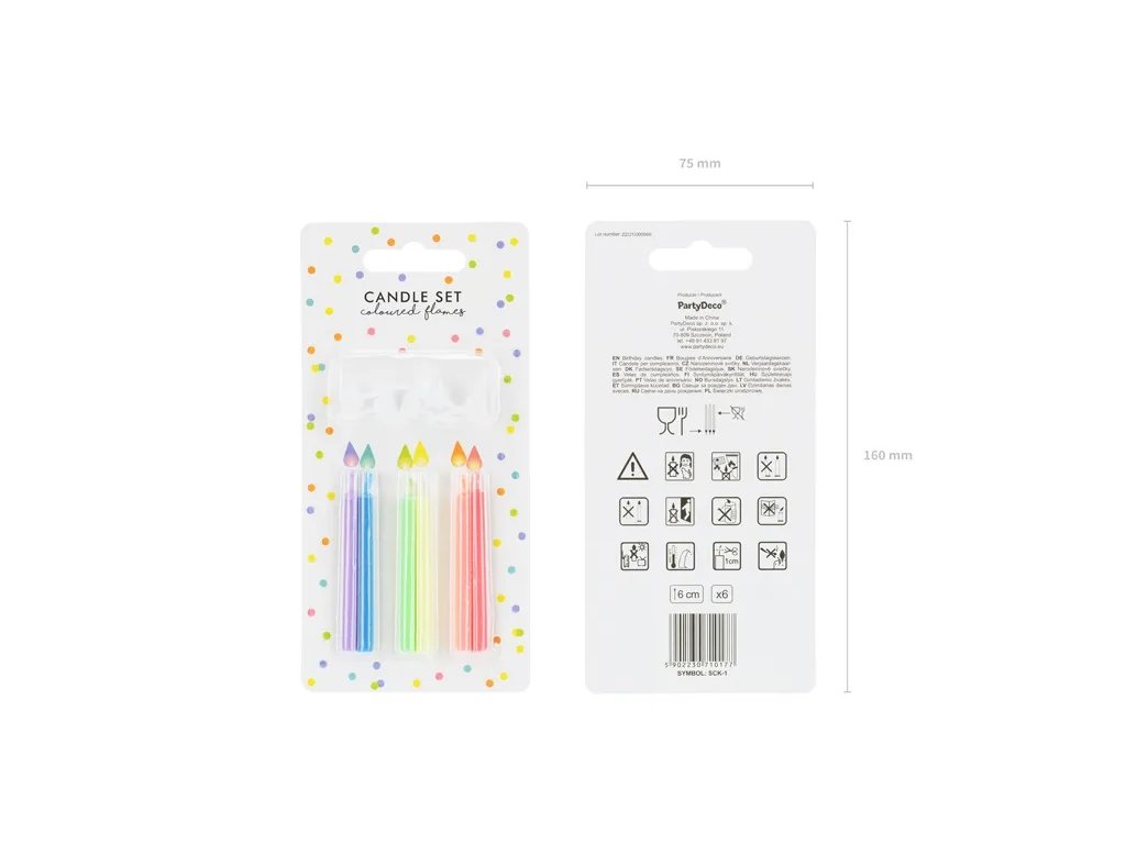 Narozeninové svíčky Colorful Flames, mix 6 barev