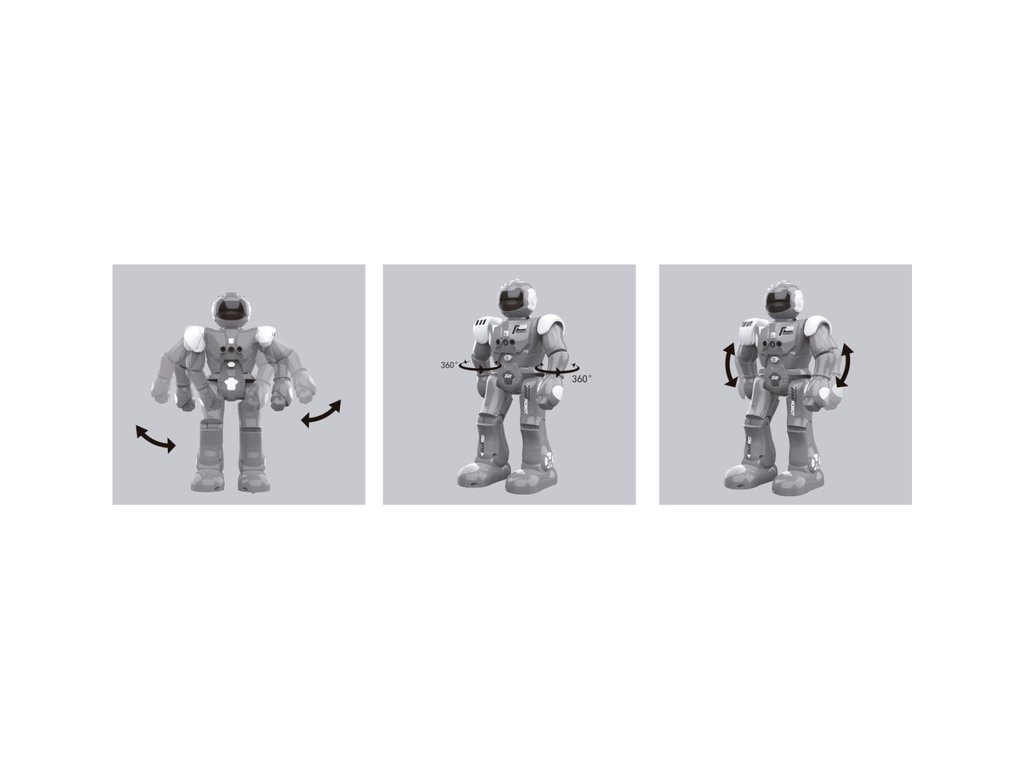 Robot je řízen infračerveným vysílačem s dosahem 5 metrů. Při ovládání je nutné mířit na robota. Vysílač napájí 2x tužkové AAA baterie. (Baterie nejsou obsahem balení).