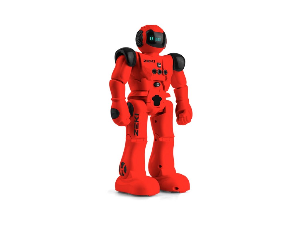 RC hračka NINCO NBOTS Zeki je robot na dálkové ovládání se spoustou úžasných funkcí, které vaše děti zabaví na dlouhé hodiny. Tělo robota je z odolného plastu v červené barvě. Místo očí má svítící LED diody, které vytvářejí různě blikající obrazce. Model má pohyblivé ruce i nohy. V nohou robota jsou motory s kolečky, díky čemuž může jezdit dopředu, dozadu a zatáčet. Dále můžete aktivovat přednastavené pohyby a funkce jakou je: imitace chůze, bruslení, tanec, vydávání zvuků, DEMO (přednastavené pohyby). Můžete si také nastavit vlastní sérii pohybů, pomocí funkce Programming Mode.