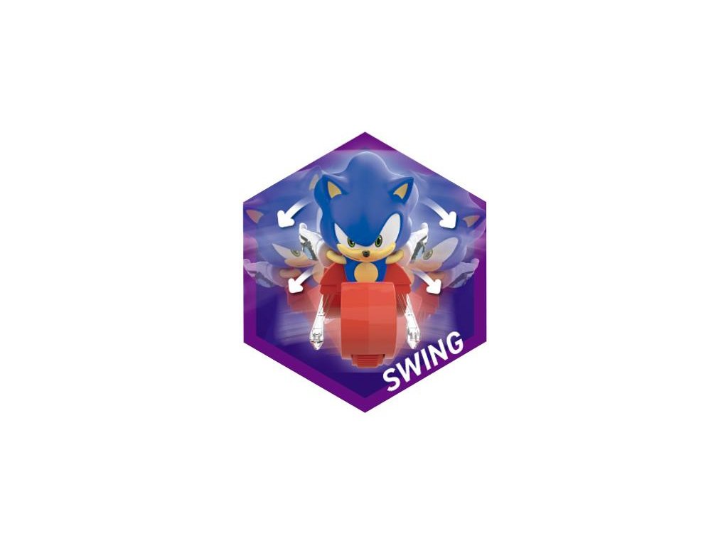 Na motorce s gumovými kolečky je pevně instalovaná licencovaná postavička Sonic se všemi detaily. Postavička je vyrobena z velmi odolného měkčeného plastu. Po stranách motorky jsou podpěry, které udržují stabilitu a při zatáčení se podpěry posouvají, čímž se motorka naklání do stran. Na bocích motorky jsou blikající LED světla, které děti zaručeně zaujmou.
