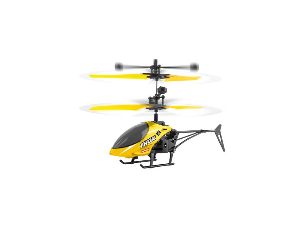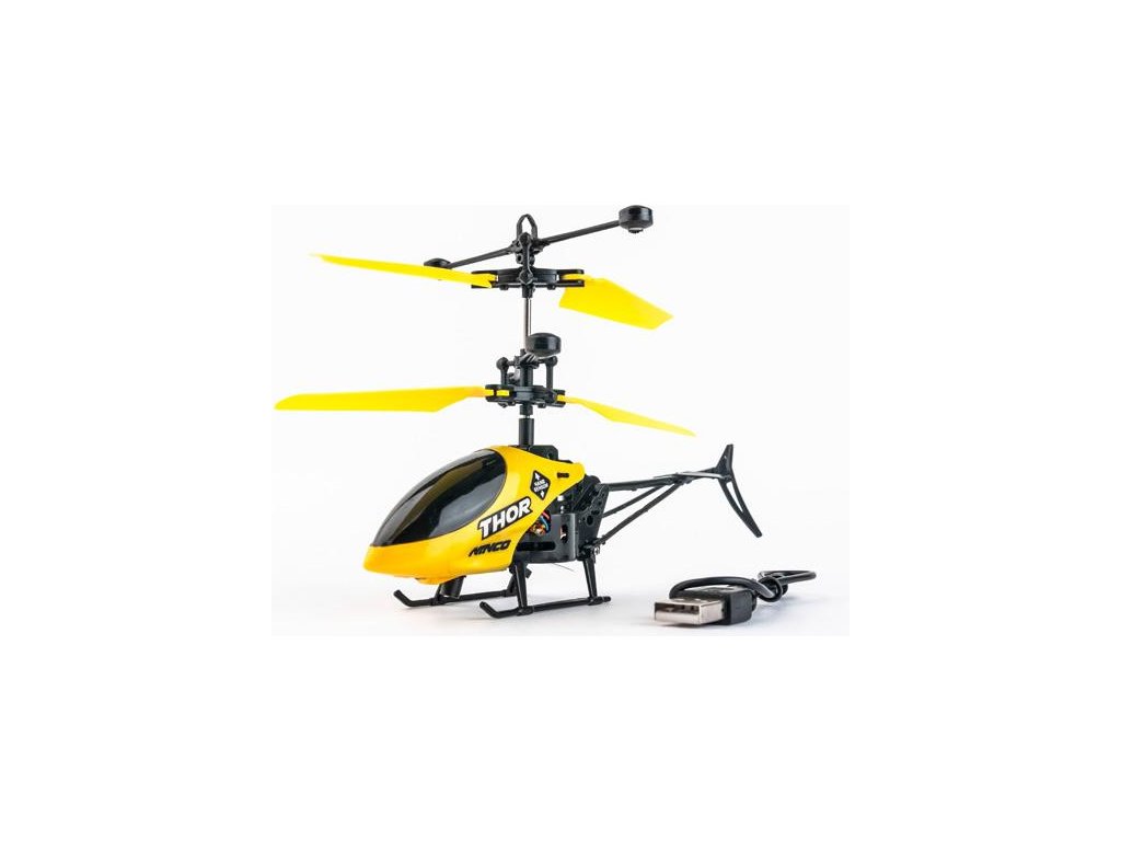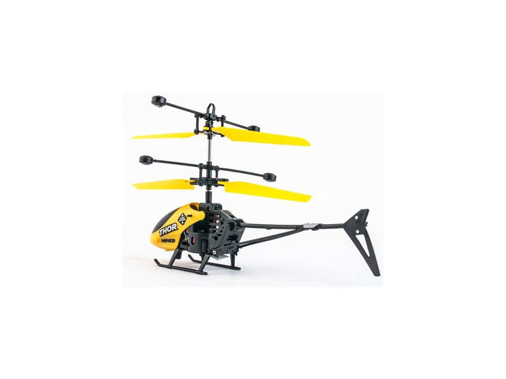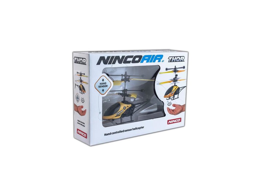 RC hračka pro děti vrtulník NINCOAIR Thor od společnosti Ninco je vhodný pro začínající piloty. Nepotřebuje žádný vysílač ovládá se pouze rukou. Po zapnutí sám vzlétne do dané výšky. Když budete chtít aby letěl výš, stačí dát pod něj ruku a on ihned zareaguje. Tento způsob ovládání ocení nejvíce děti. Díky integrovanému gyroskopu je při letu velmi stabilní. K vůli své malé hmotnosti je určen do interiéru. Vrtulník má odolnou konstrukci. Plastová karoserie má žlutou barvu. Dva protiběžné rotory roztáčí silný stejnosměrný motor.