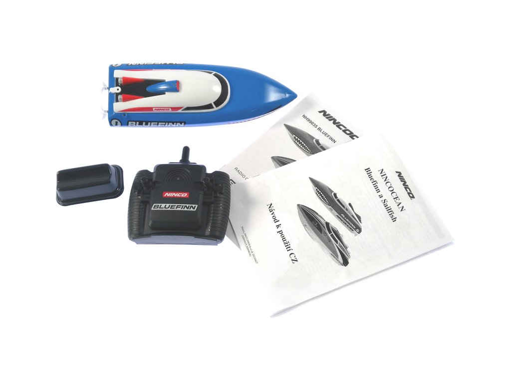 Balení obsahuje loď na dálkové ovládání NINCOCEAN Bluefinn, vysílač 2,4 GHz. Návod CZ a manuál EN, ES, PT, DE, FR, IT, DK, NO, FI, SV, NE.