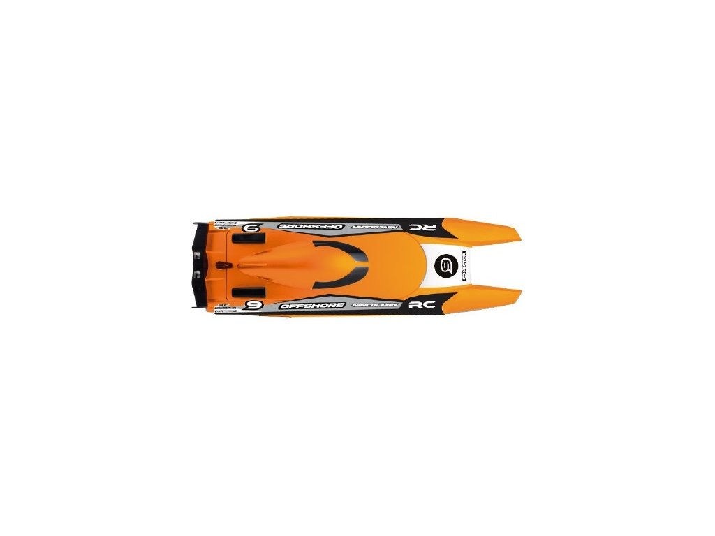 Závodní člun na dálkové ovládání NINCOCEAN Offshore 2.4GHz RTR s rychlostí až 25 km/h. Detailní zpracovaní. Pohon a řízení pomocí dvou motorů s lodními šrouby. Napájení lithiovým akumulátorem 7,4 V 500 mAh, USB nabíječ. Moderní vysílač 2,4 GHz. Doba plavby až 15 minut.