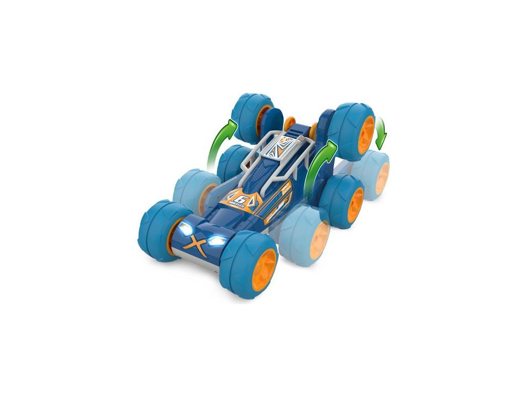 Auto na dálkové ovládání NINCORACERS 6 Wheeler RTR se šesti koly nabídne úžasnou všestrannost a možnost překonávání překážek. Zadní kola jsou na rameni, které lze dálkově otáčet (přes vysílač). Auto navíc vydává zvuky a má před LED osvětlení. Všechny funkce lze řídit dálkově přes vysílač. Dokonce lze naprogramovat funkce. Vysílač pracuje spolehlivě a bez rušení, či výpadků v pásmu 2.4 GHz. Kvalitní akumulátor Li-ion 3,7V 1200mAh a USB nabíječ v balení.