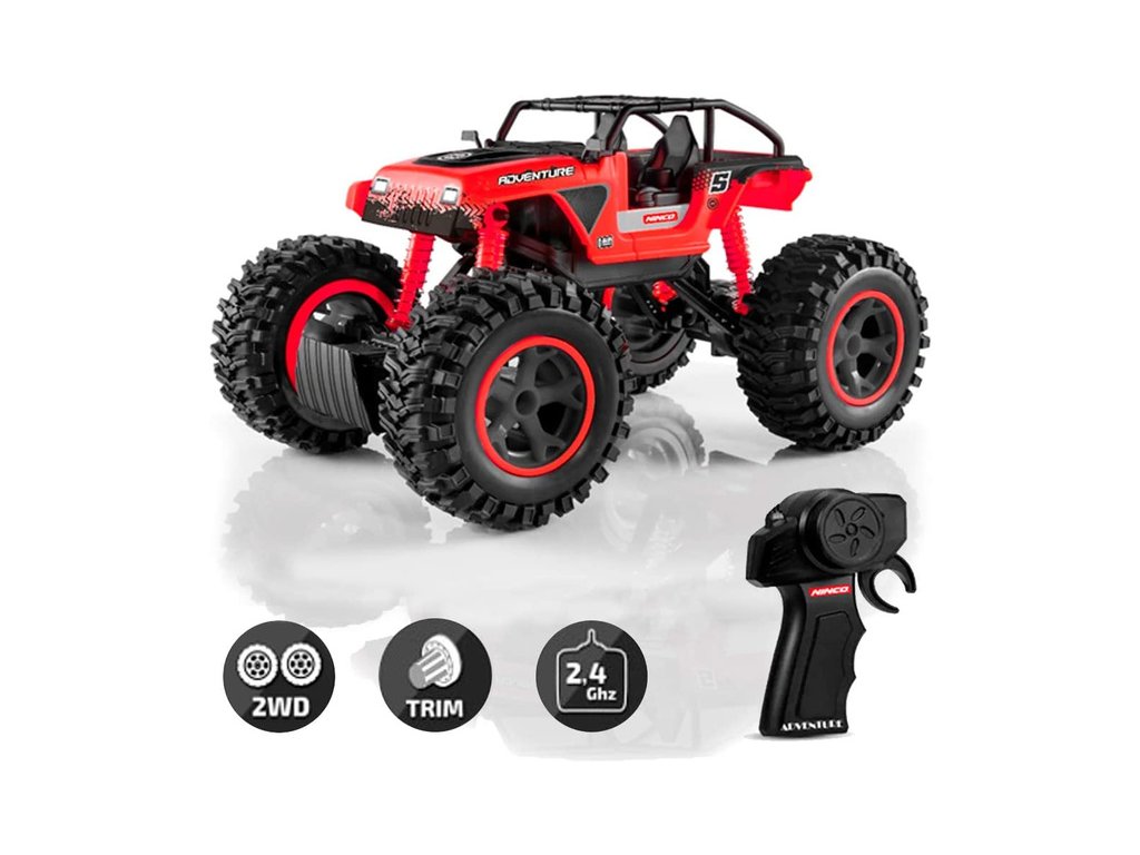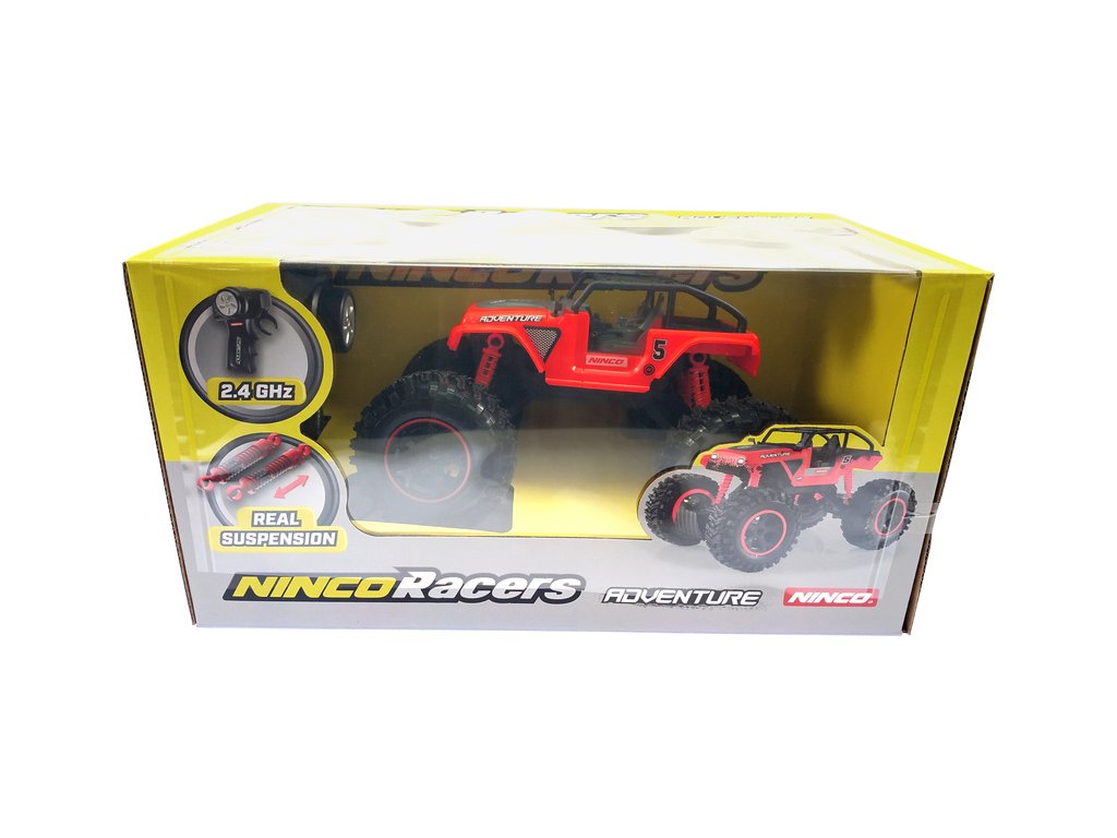 RC terénní auto NINCORACERS Adventure, v měřítku 1:16. Pohon zadních kol, odpružené nápravy s měkkými pneumatikami, odolná konstrukce, propracovaný interiér modelu. Spolehlivé řízení zajišťuje vysílač Ninco na frekvenci 2.4 Ghz. Stačí jen doplnit tužkové baterie.