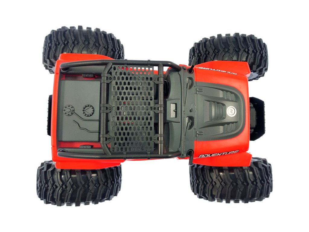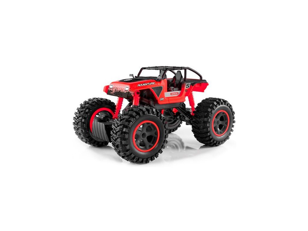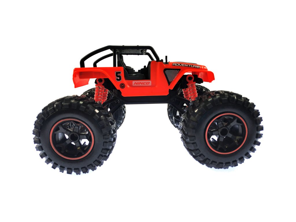 RC hračka pro děti NINCORACERS Adventure v provedení Monster Truck je dálkově řízené autíčko v měřítku 1:16 vhodné zejména pro jízdu v interiéru. Díky měkkým pneumatikám a odpruženým nápravám, autíčko zvládne projet i obtížnější překážky, které mu děti připraví. Pohon auta zajišťuje elektromotor, jež přenáší sílu na zadní kola.