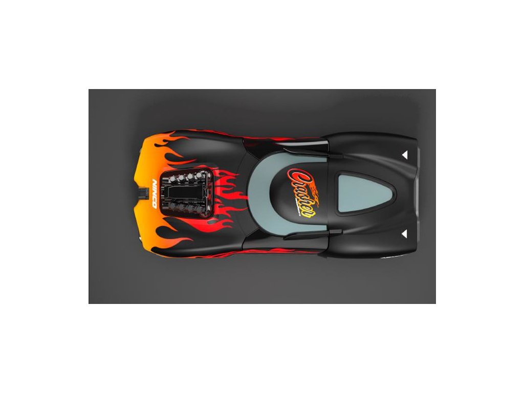 Auto na dálkové ovládání NINCORACERS Crasher RTR s LED osvětlením a třemi rychlostmi přepínatelnými na vysílači. Auto obsahuje speciální zábavnou funkci - při nárazu do překážky efektně odpadnou dveře a motor. Pod dveřmi je červené podsvícení. Provoz auta je pět na tužkových baterií typu AAA (3ks do autíčka, 2ks do vysílače) (baterie nejsou součástí balení). Vysílač pracuje spolehlivě a bez rušení, či výpadků v pásmu 2.4 GHz.