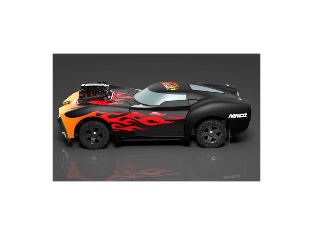 Model auta je pěkně zpracovaný s grafikou plamenů na karoserii. Přední světlomety obsahují bílé LED. Boční dveře jsou podsvíceny červeně. Náhon stejnosměrným motorem je na zadní kola (2WD).