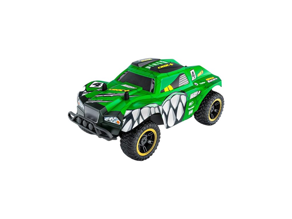 Terénní auto na dálkové ovládání Ninco Croc+ v měříku 1:18. Auto je dlouhé 26,5 cm a dosáhne rychlosti až 15 km/h. Zelená karoserie s velkými čelistmi zaujme především děti. Pohon zadních kol. Velké terénní pneumatiky. Volantový vysílač 2,4GHz. Model je na tužkové baterie.