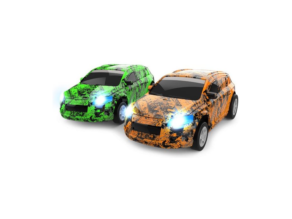 Dvě mini autíčka v měřítku 1:64 jsou poháněny elektrickým motorkem a vybaveny akumulátorem NiMH 1.2 V 120 mAh s dobou jízdy 4-8 minut na jedno nabití. Autíčko umožňuje jízdu dopředu, dozadu a zatáčení do stran. Pro nezapomenutelnou atmosféru jsou autíčka vybavena předními bílými a zadními červenými LED světly, které svítí pokud jedete dopředu, respektive dozadu.