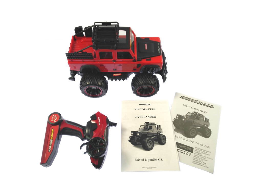 Balení obsahuje model auta na dálkové ovládání NINCORACERS Overlander, vysílač 2,4 Ghz. Návod CZ a manuál EN, DE, IT, NO, SE, NL, ES, PT FR, DK, FI.