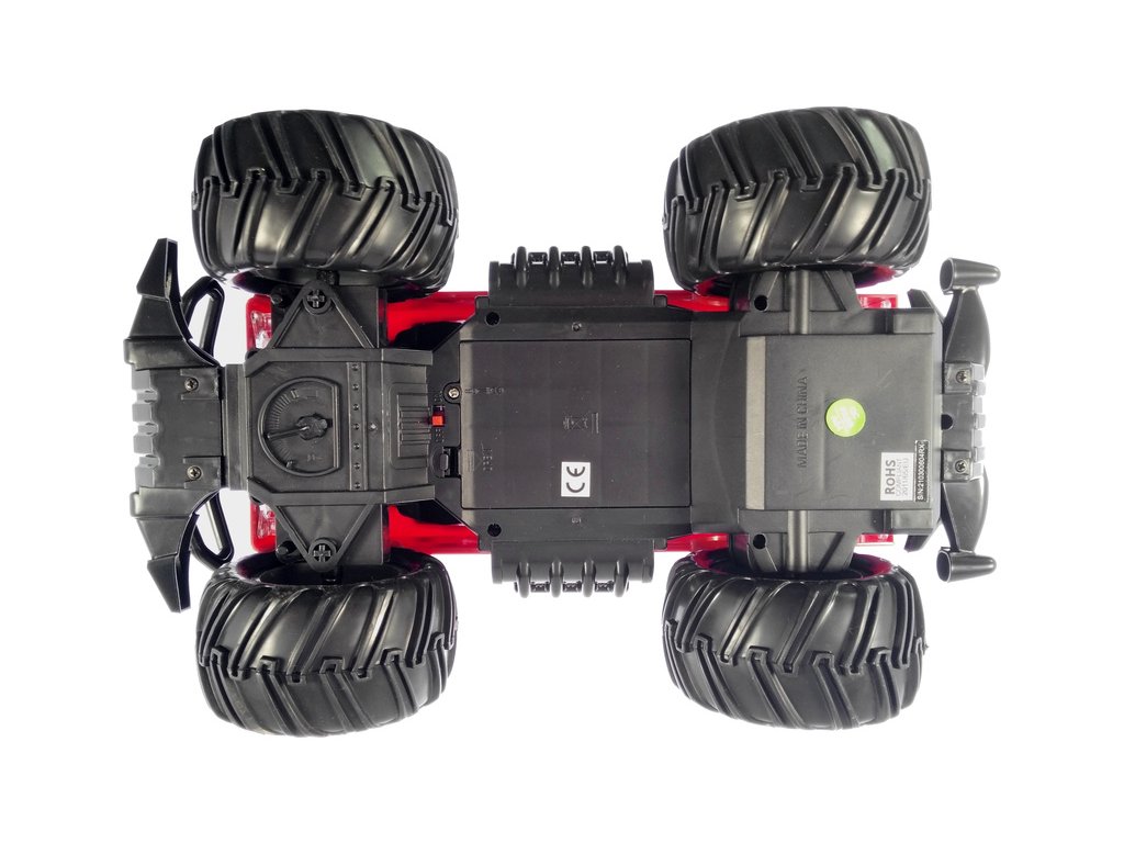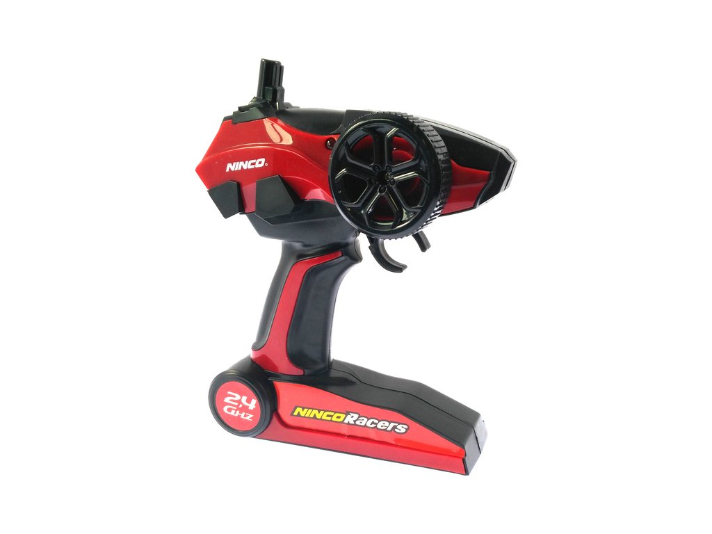 Velmi dobře ergonomicky zpracovaný volantový vysílač s dlouhým dosahem. Pracuje na frekvenci 2,4GHz. Díky tomu nedochází k žádnému rušení. Má integrovanou anténu, která se už nikdy neulomí. Černo-červené barevné provedení a velký volant. Vysílač má tyto funkce: dopředu, dozadu a zatáčení doleva, doprava. Neutrální polohu kol lze jemně nastavit trimem ve spodní části auta.