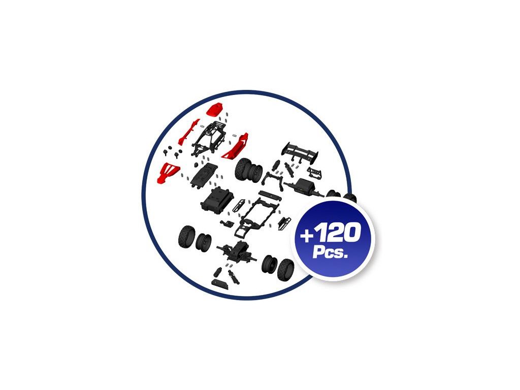 Balení obsahuje více než 120 dílů pro sestavení auta na dálkové ovládání. Jednotlivé díly jsou navrženy tak, aby stavba nebyla náročná a není k ní potřeba nářadí. Elektronika je pro zjednodušení rozdělena do jednotlivých modulů, které jsou již zkompletovány a stačí je pouze propojit.