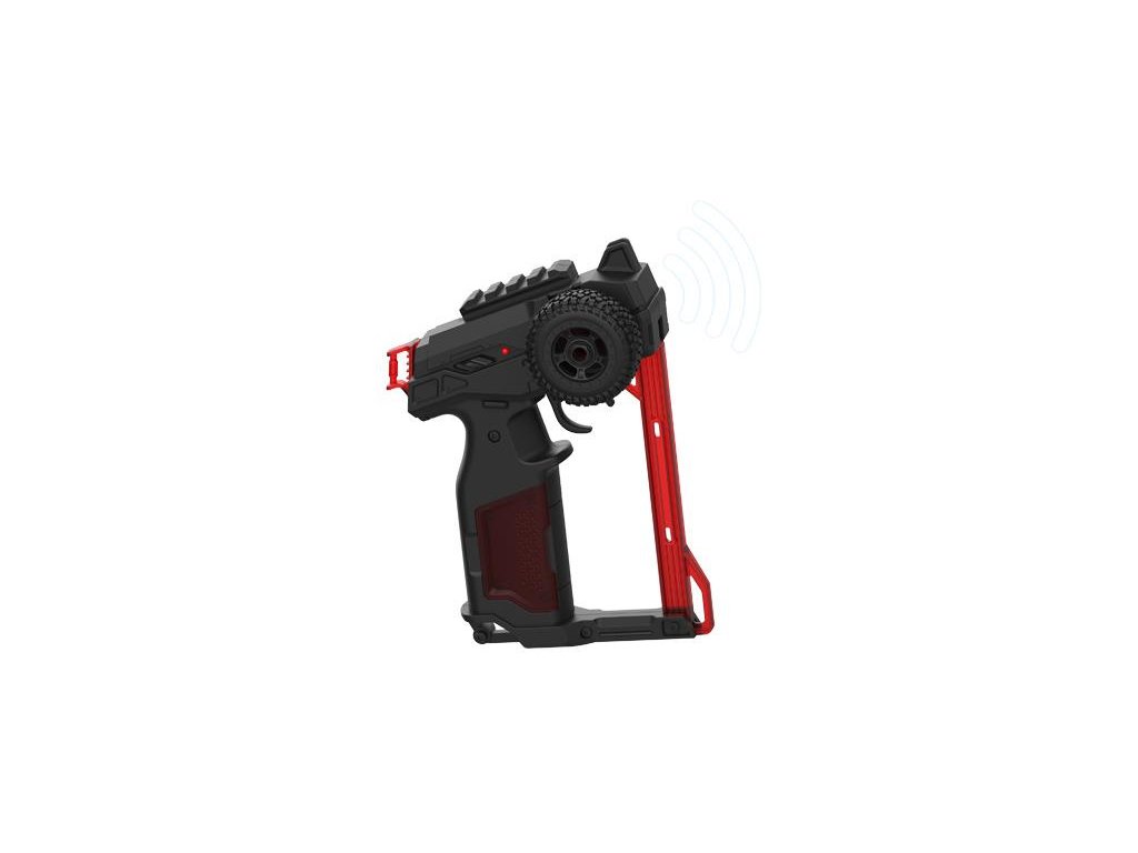Volantový vysílač pracuje na frekvenci 2,4GHz. Díky tomu nedochází k žádnému rušení. Má integrovanou anténu, která se už nikdy neulomí. Neutrální polohu kol lze nastavit trimem ve spodní části auta.