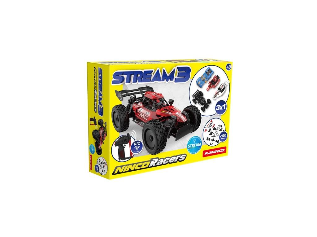 Stavebnice auta na dálkové ovládání NINCORACERS Stream 3 in 1. Naučte děti jak funguje mechanika s autíčkem, které sestaví z více než 120 dílů. Stavba je přitom jednoduchá a není potřeba nářadí. Na výběr jsou 3 karoserie. Provoz auta je na tužkové baterie. Vysílač 2.4 GHz. Rychlost až 8 km/h.