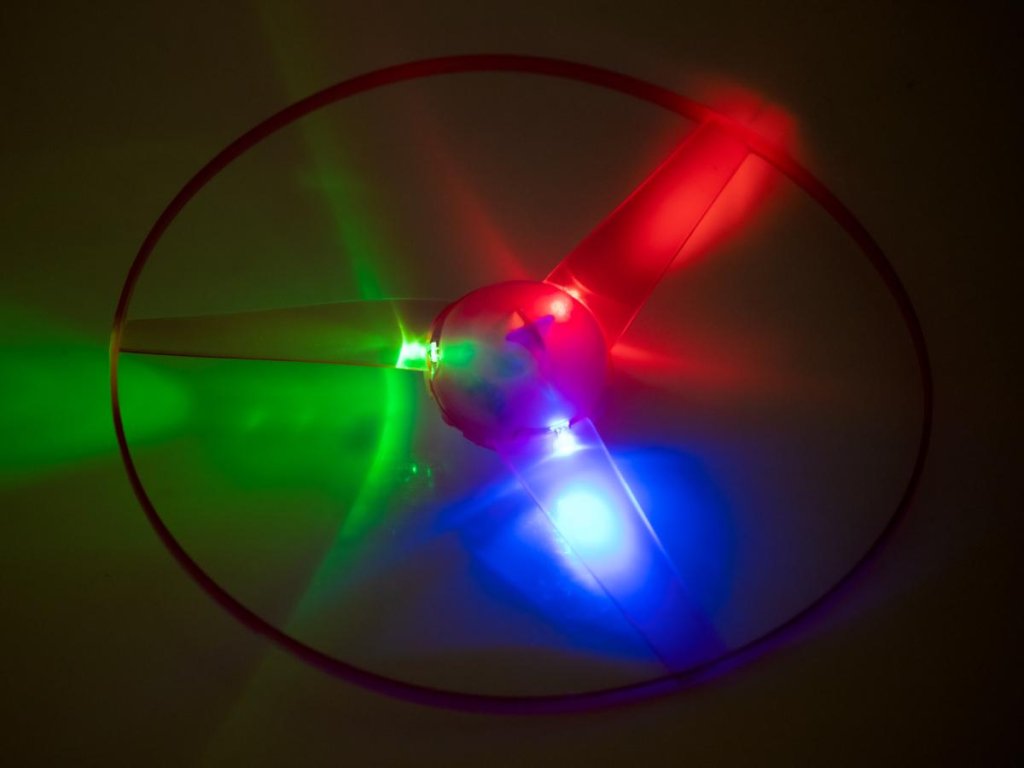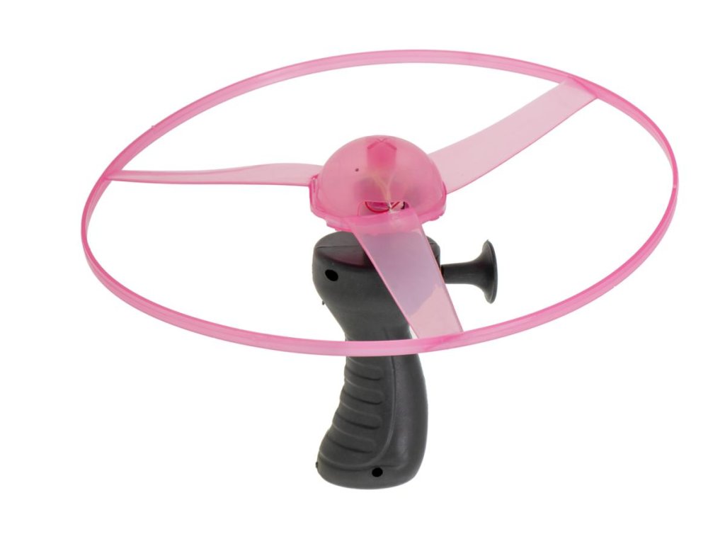 Odpalovací zařízení ve tvaru létající vrtule s rukojetí z odolného plastu.Hračka je vybavena LED diodami, které během letu svítí různými barvami.