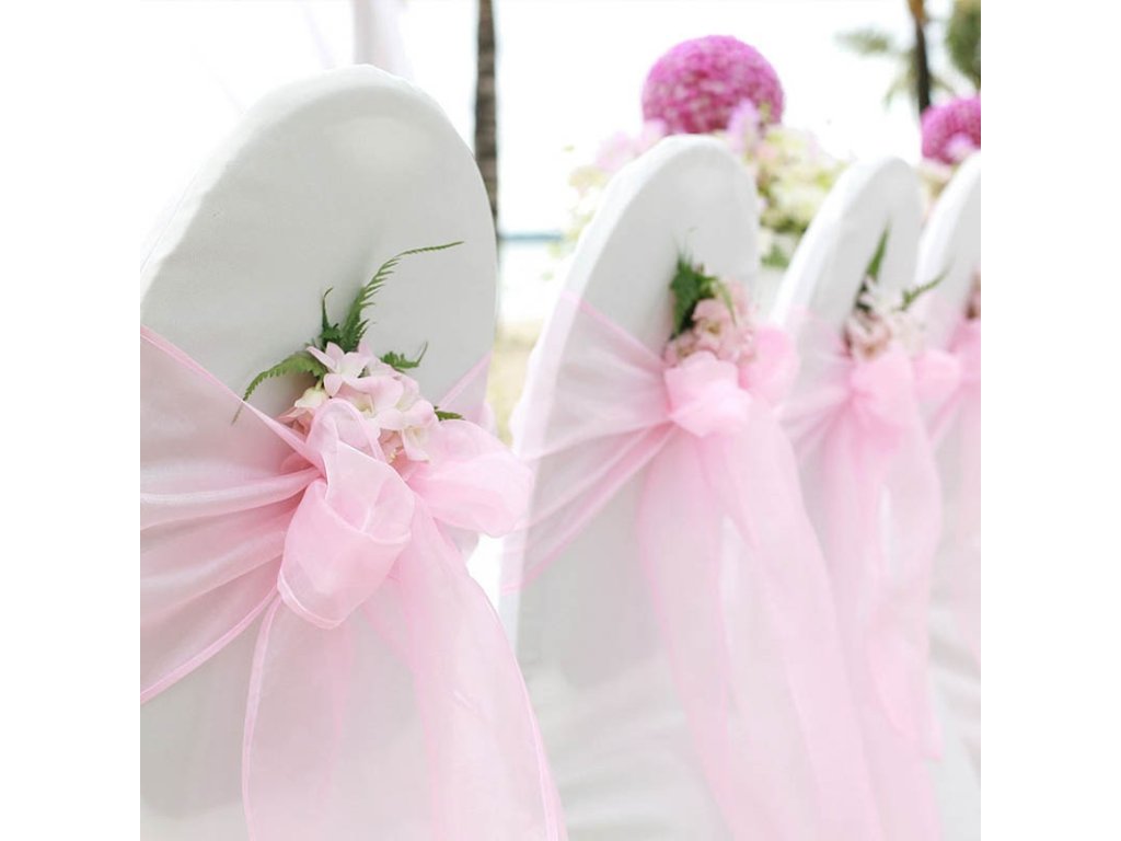 Organzová široká stuha vhodná k ovázání židlí s potahem či bez potahu. Ovázání na mašličku.