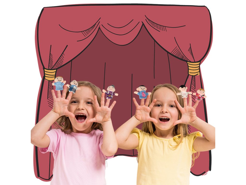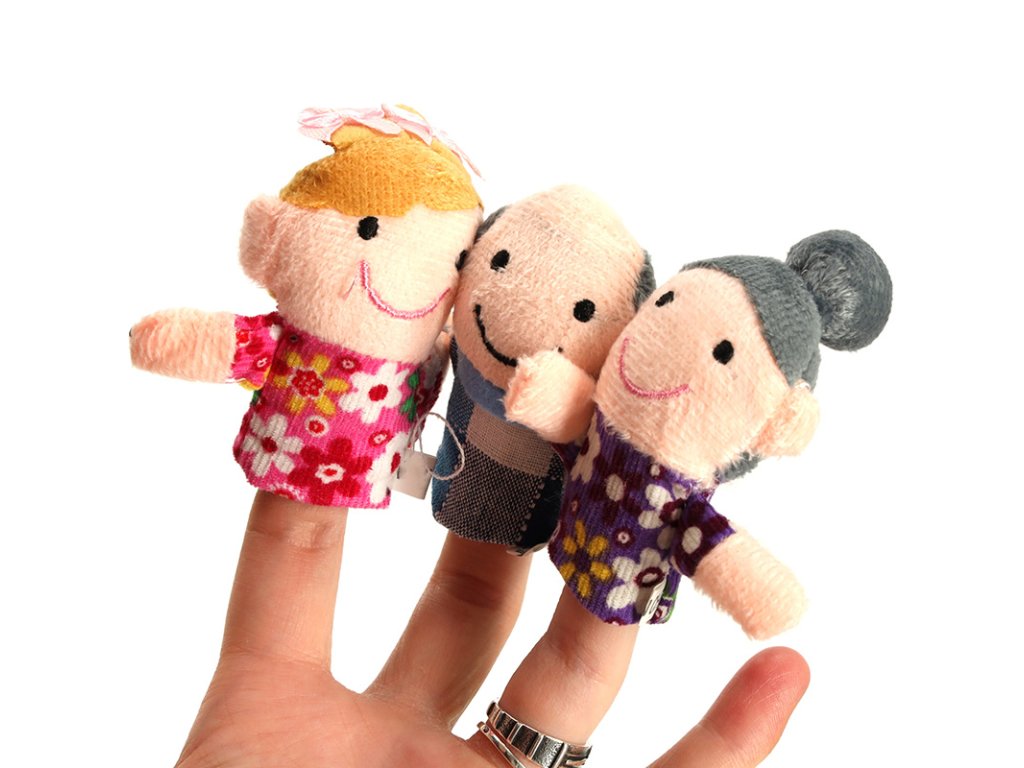 Loutky se snadno nasazují na prsty. Velmi vtipné a snadno použitelné i pro děti.