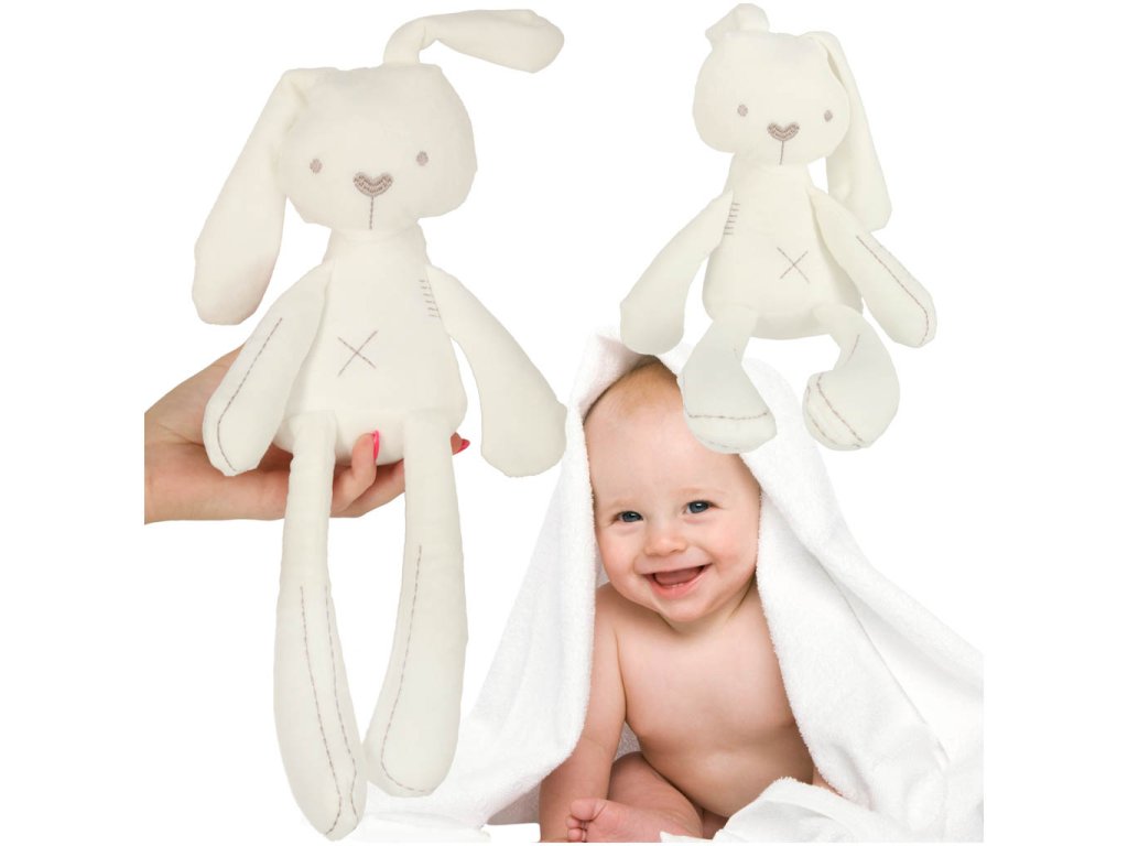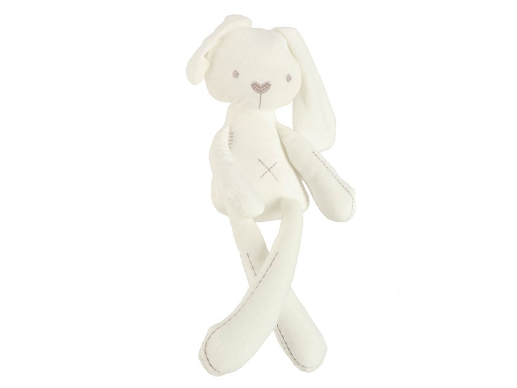 Králíček je plněný plyšem. V nožičkách a ručičkách má kuličky.