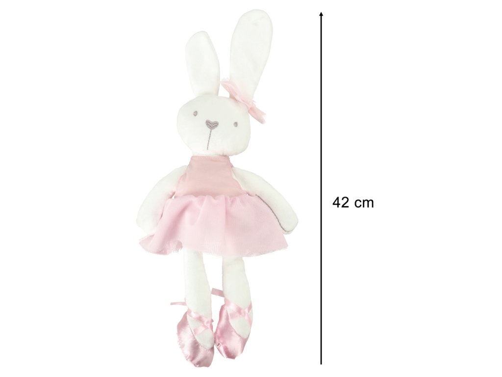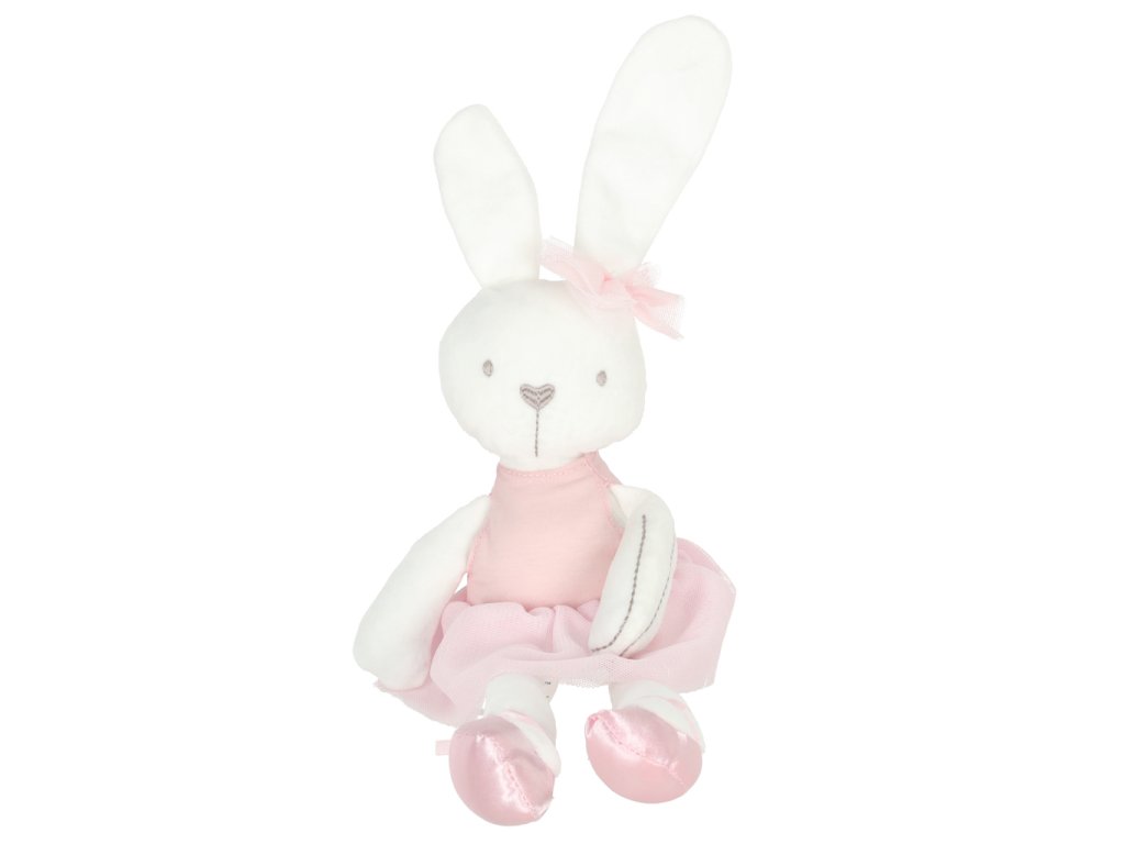 Plyšový králík je společníkem každého malého dítěte, ideální na mazlení a hraní. Je vyroben z vysoce kvalitní bavlny a plněný plyšem, takže je příjemný na dotek. Jeho klasická bílá barva v kombinaci s růžovými šatičky mu dodává zvláštní kouzlo.
