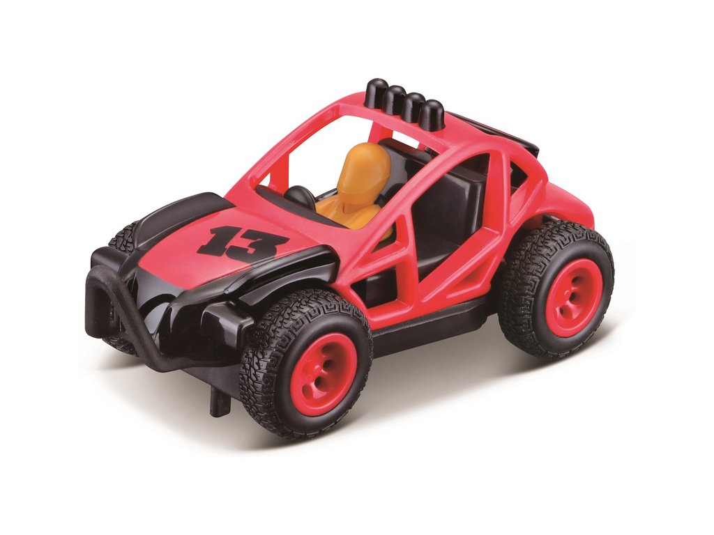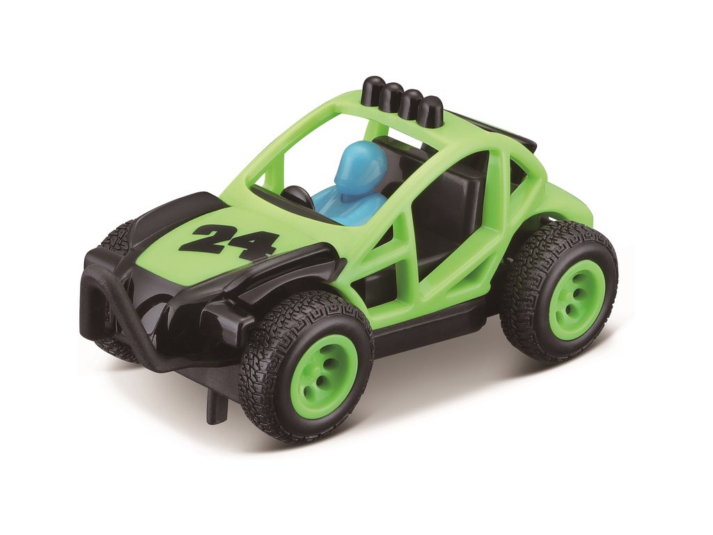 Balení obsahuje pěkně zpracovaná dráhová autíčka Buggy Rally v zelené a červené barvě.