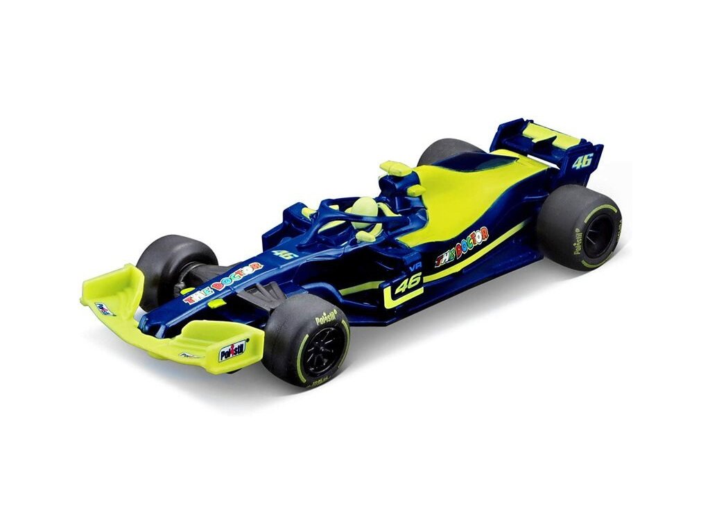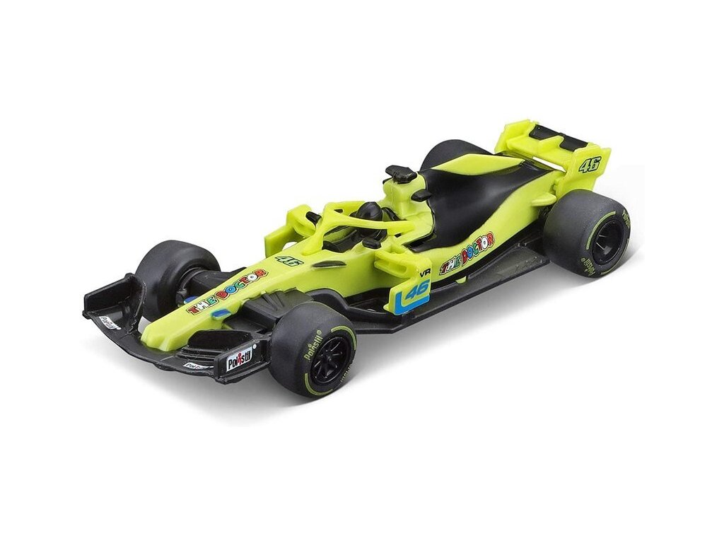 Balení obsahuje pěkně zpracovaná dráhová autíčka formule - s motivem VR46.