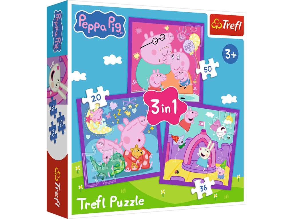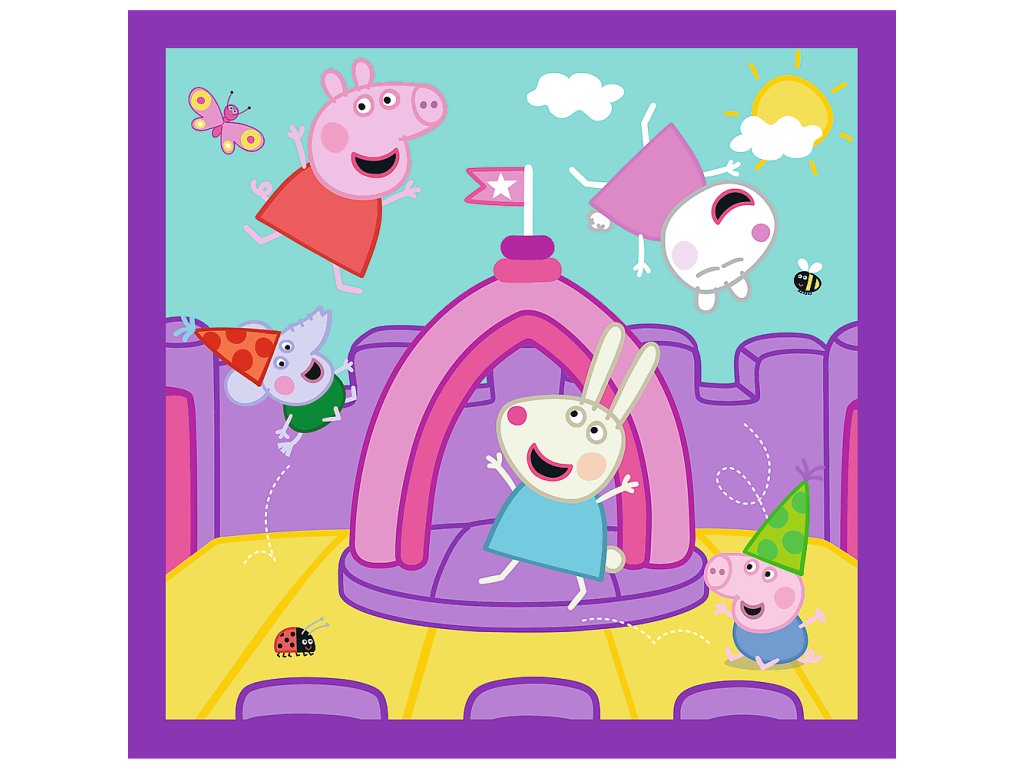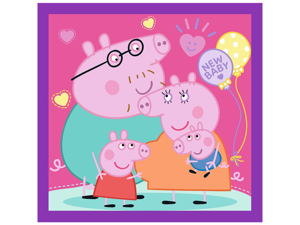 Puzzle Prasátko Peppa je trojice nezávislých puzzle pro děti, navržených s ohledem na mladé fanoušky Prasátka Peppy. Po sestavení puzzle vytvoří tři obrázky, z nichž největší má rozměry 200x195 mm. Různý počet dílků umožňuje hru jak mladším, tak i o něco starším dětem.