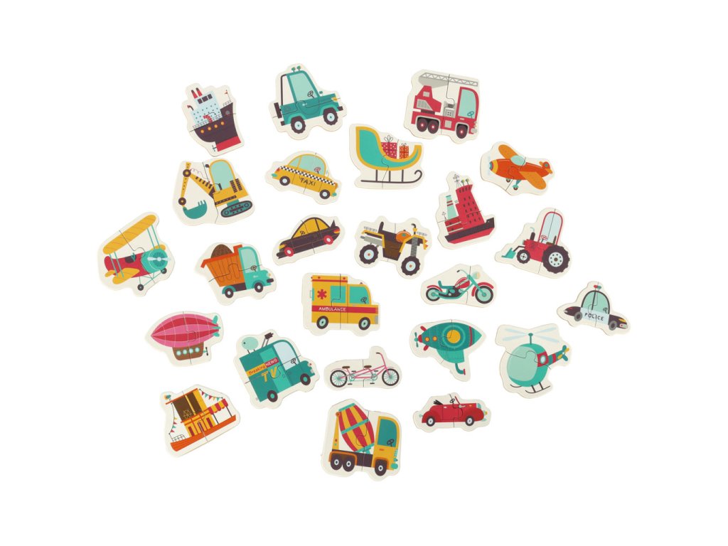Počet prvků v sadě: 24 vozidel ve formě dvoudílných puzzle