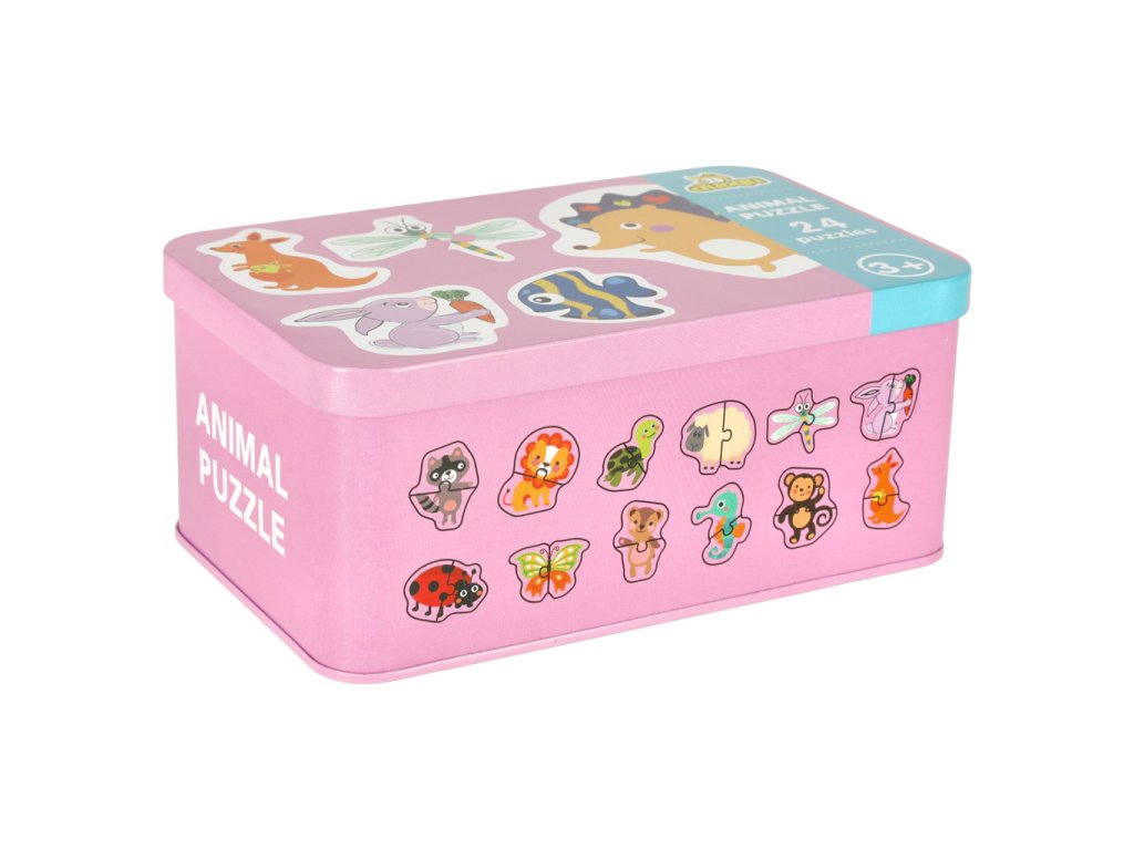 Puzzle jsou baleny v praktické kovové krabičce pro snadné skladování. Skládání puzzle rozvíjí logické myšlení, koordinaci rukou a očí a jemnou motoriku.