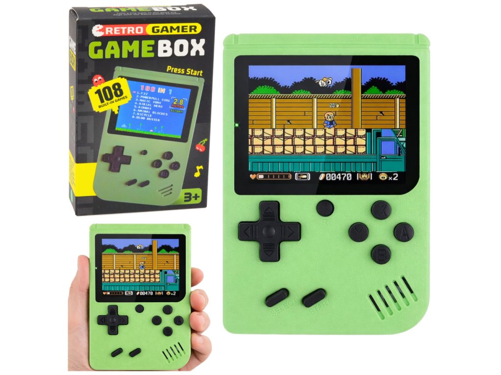 Retro kapesní herní konzole – 108 her, zelená