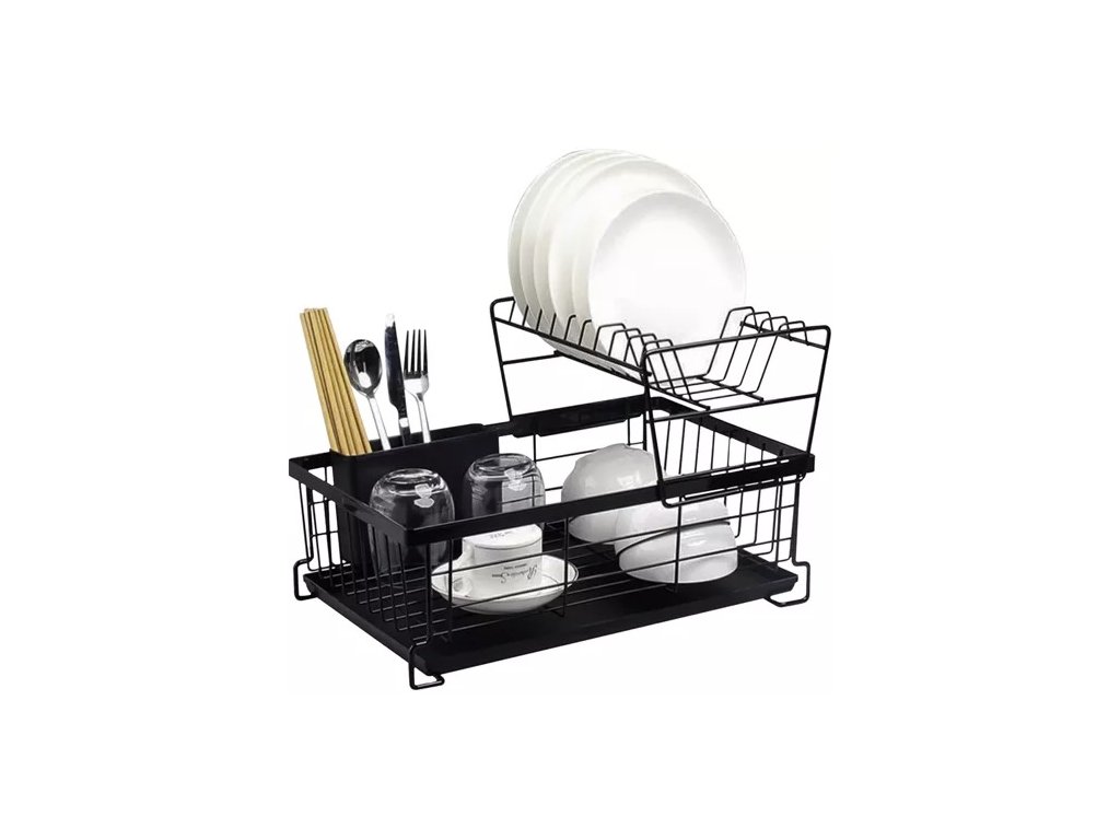 - Dvouúrovňový odkapavač nádobí je navíc vybavena praktickou nádobou na příbory. Rozdělení na 2 přihrádky usnadňuje třídění lžic, vidliček a nožů. Výrobek usnadňuje udržování pořádku v kuchyni.