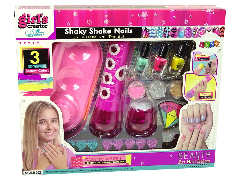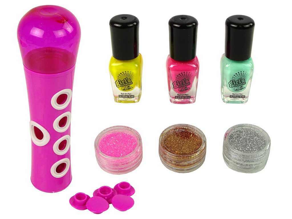 Sada na lakování nehtů s dávkovačem třpytek – laky, šablony, samolepky