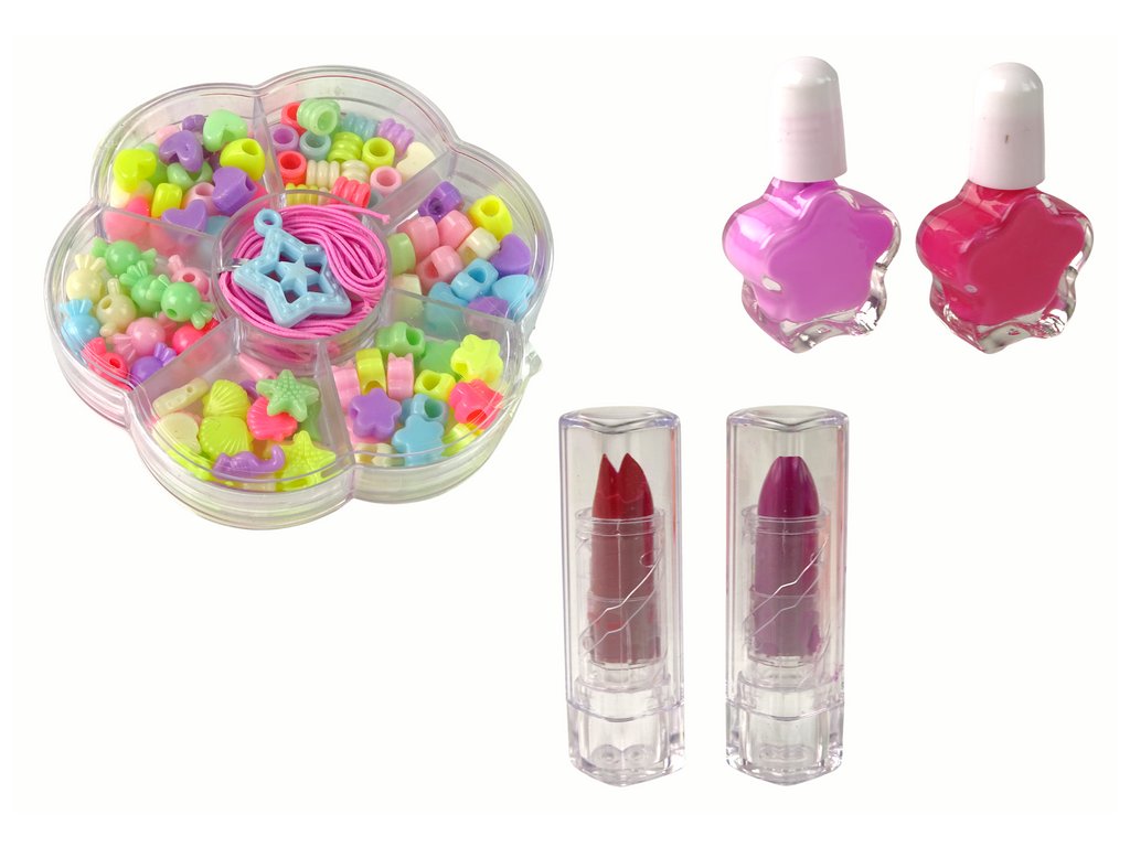 Sada navíc obsahuje nádobku se 100 různými korálky v 6 různých tvarech (bonbóny, srdíčka, hvězdičky, hvězdice, mořští koníci, mušle), které lze použít k vytvoření jedinečných šperků. Sada obsahuje také růžovou gumičku na výrobu náramků a velký modrý přívěsek ve tvaru hvězdy.