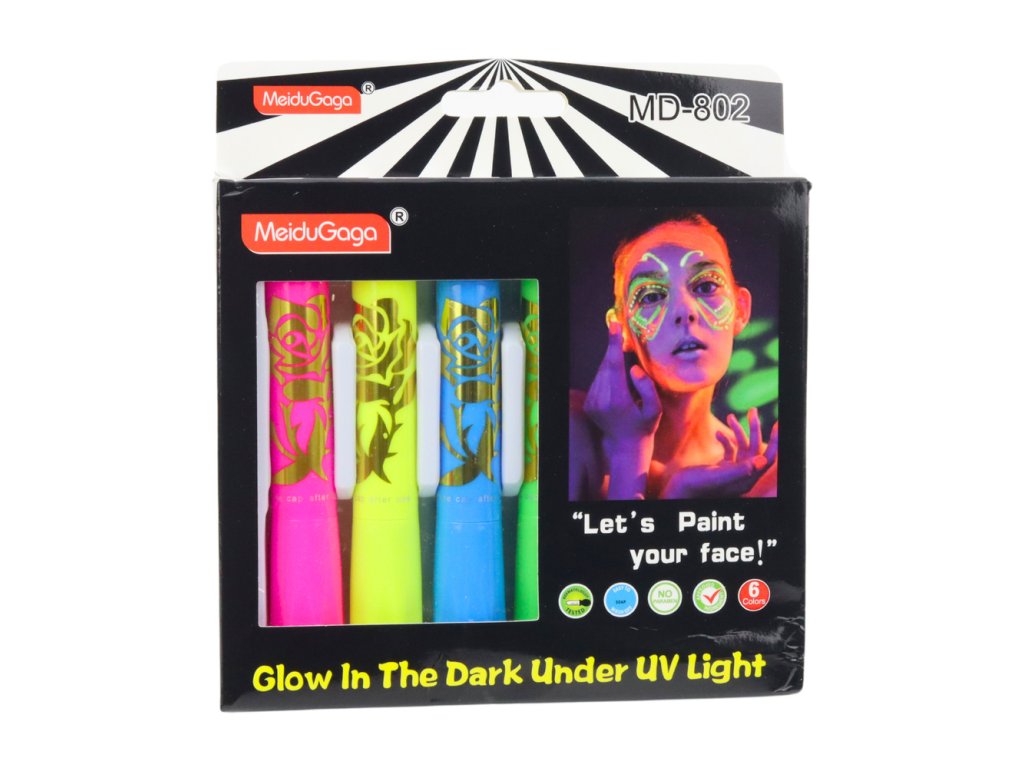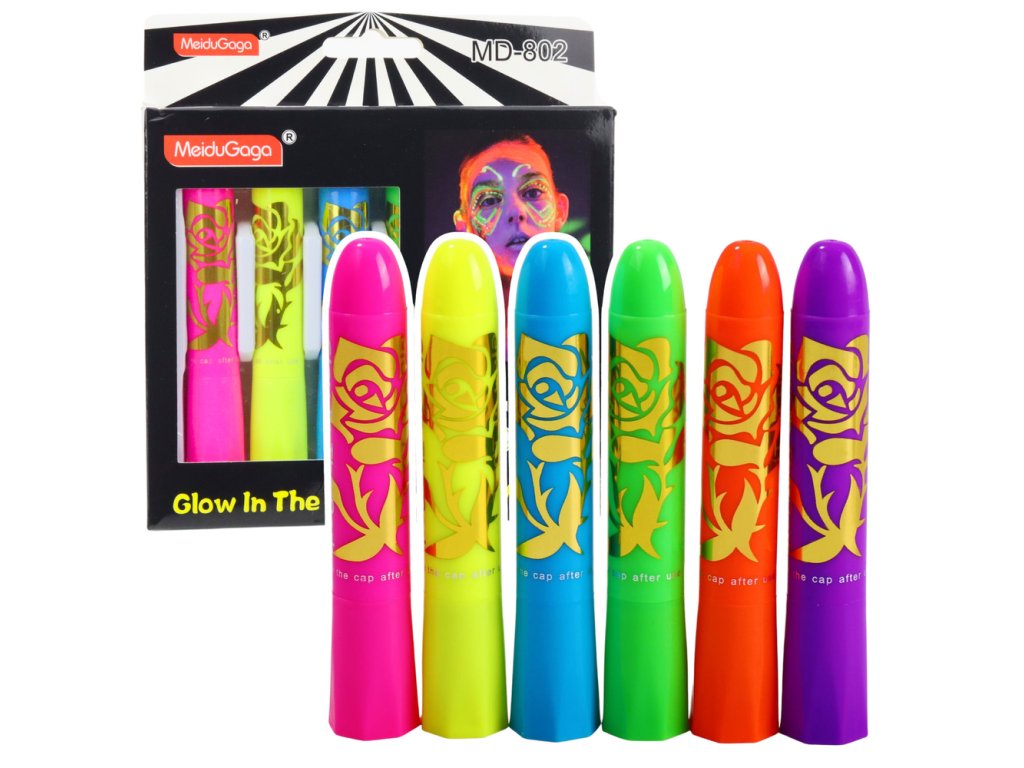 Sada na malování na obličej, neonové UV fluorescenční barvy, 6 ks