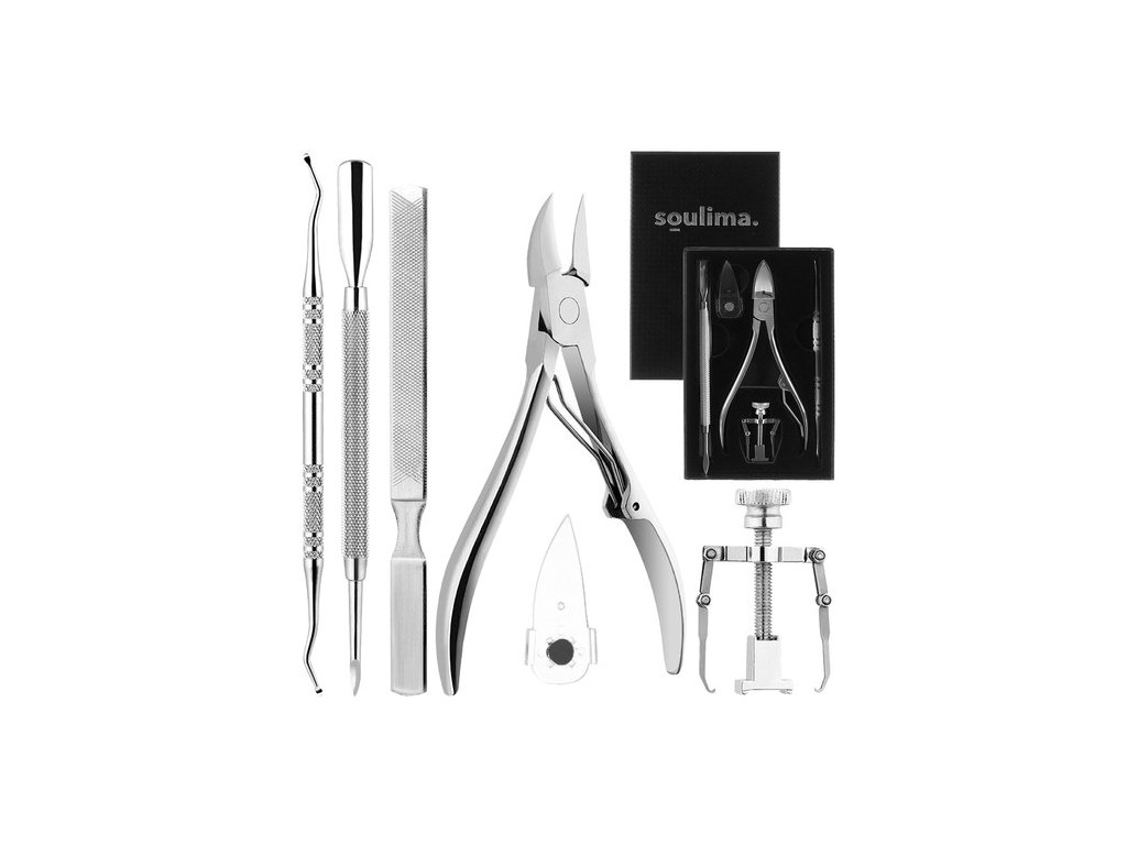 - K ošetření zarostlého nehtu máte všechny potřebné nástroje v jednom balení. Celá sada se skládá ze 6 profesionálních nástrojů jako jsou: pilník, ochranný štít, zatlačovač kůžičky, řezák, korektor a zvedák.