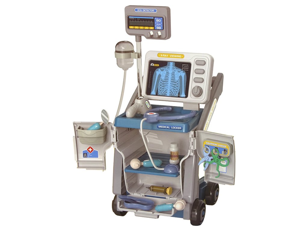 Představujeme okouzlující růžovou sadu Malý doktor, která potěší malé nadšence do medicíny! Tato sada s rozměry přibližně 50 cm x 25 cm x 25 cm je jedinečným vzdělávacím zážitkem. V ní najdete krásný mobilní stojan na kolečkách, vyzdobený v bílé a růžové barvě. Sada obsahuje také široký výběr potřebných lékařských nástrojů, včetně injekční stříkačky, nůžek a stetoskopu, který funguje na baterie (3x1,5 V - baterie nejsou součástí balení).