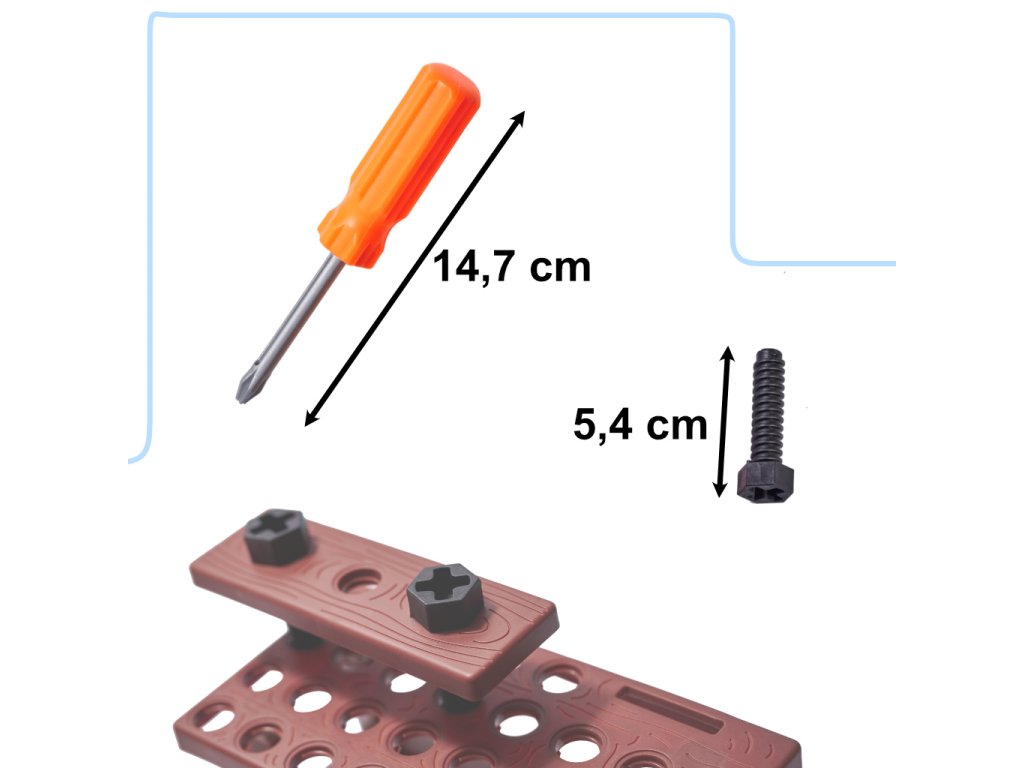 Hraní se sadou dokonale ovlivňuje manuální dovednosti dětí. Každý nástroj vyžaduje jiný pohyb těla. Zatloukání hřebíků, šroubování vrutů, řezání dřeva – vše je zvládnutelné!