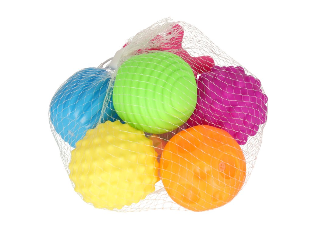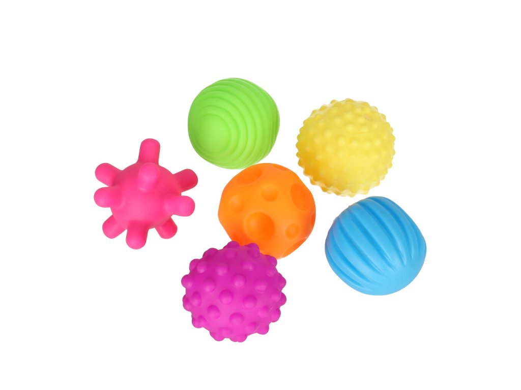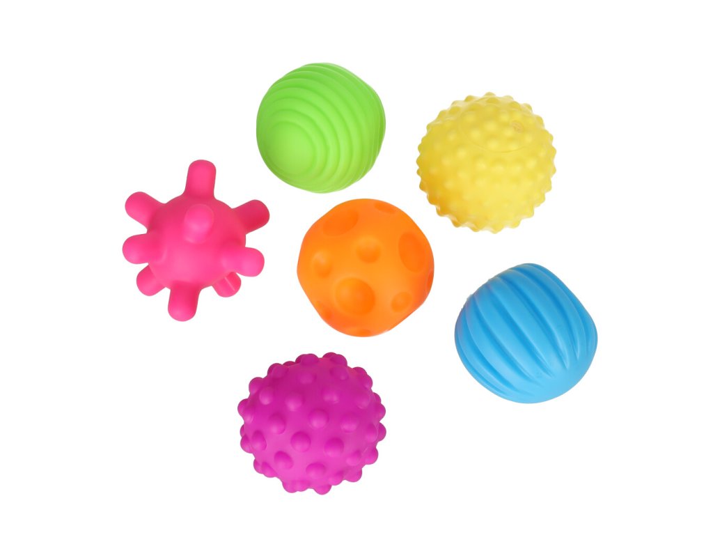 Sada šesti senzorických míčků je určena pro nejmenší a kombinuje kreativní hru se smyslovým rozvojem. Každý míček má jinou barvu, jedinečnou texturu a zabudovaný pískací mechanismus, který stimuluje zvědavost miminek a povzbuzuje je ke hře.