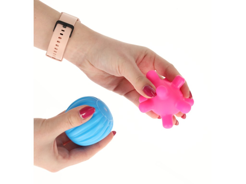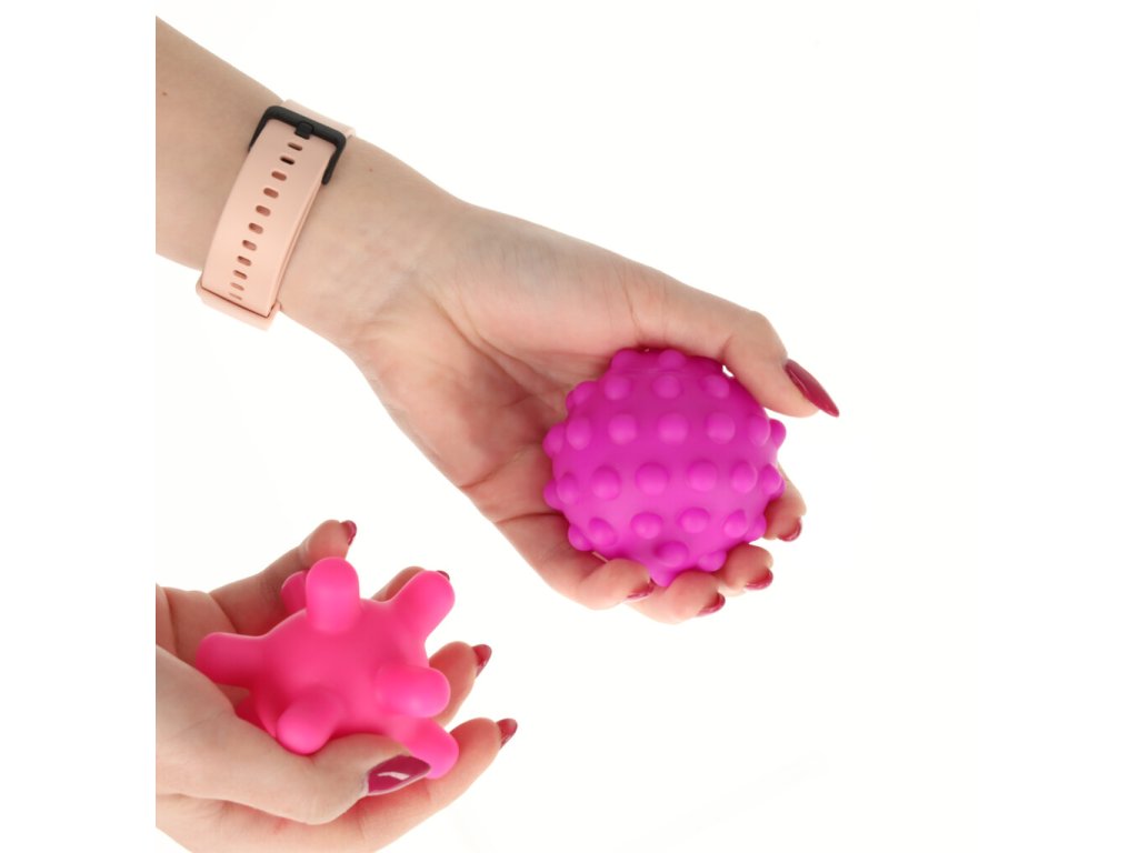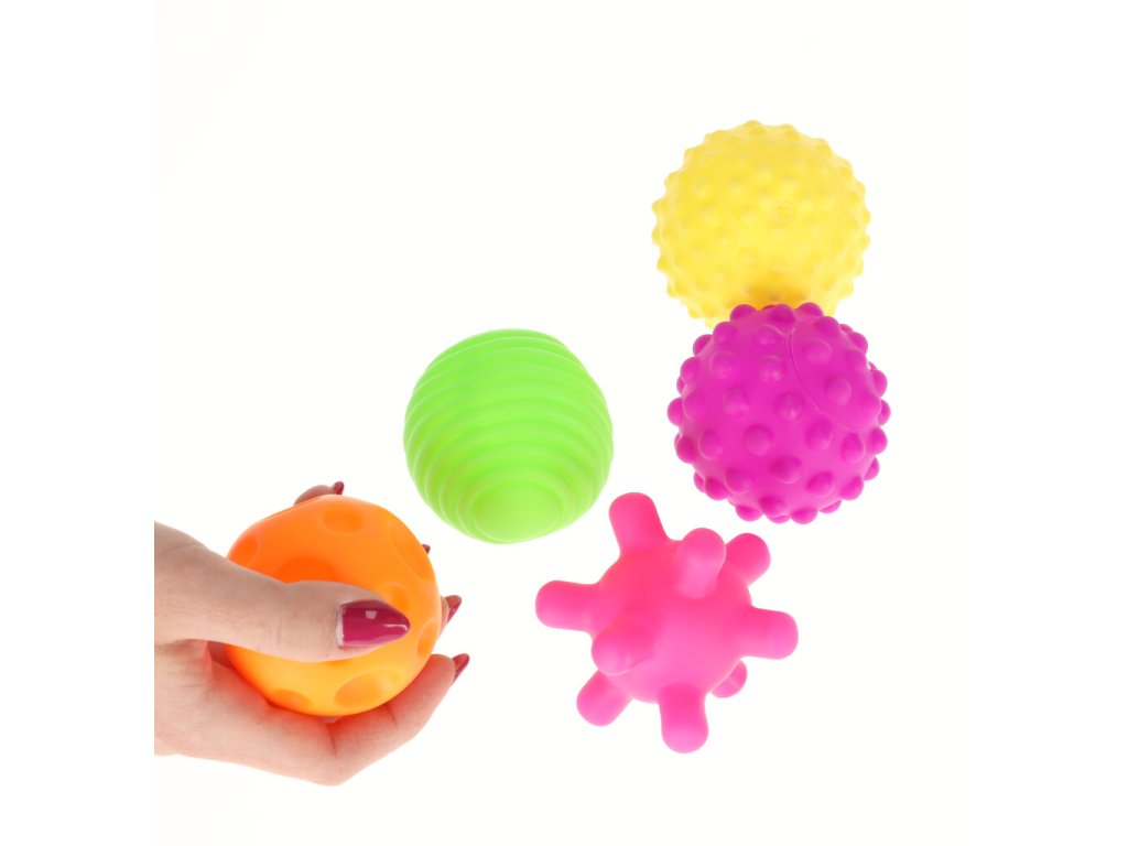 Míčky mají průměr 20 cm a jsou vyrobeny z měkké, bezpečné gumy, takže jsou vhodné pro miminka od prvních dnů života. Různé míčky stimulují hmat, zrak a sluch a zároveň podporují rozvoj motorické koordinace a úchopu.