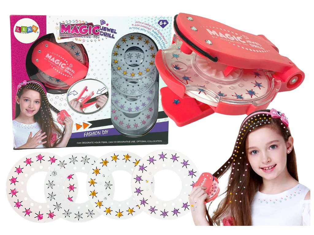 Aplikátor lze použít k krásnému zdobení účesu malé holčičky. Copánky nebo rozpuštěné vlasy lze ozdobit krásnými diamanty v srdíčkách, květinách a hvězdičkách.