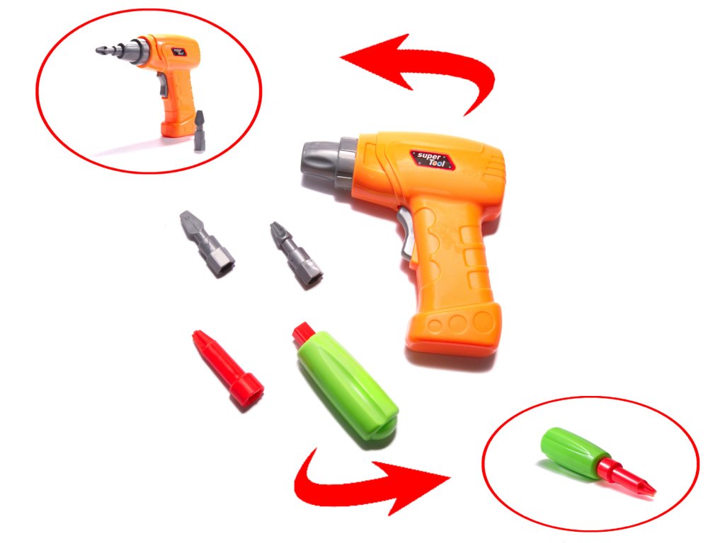 Po vložení baterií a spuštění šroubováku se roztočí jako skutečný přístroj.