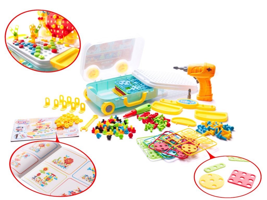 Úžasná sada, která batole jistě zabaví na celé hodiny a poskytne mu spoustu fascinující zábavy.