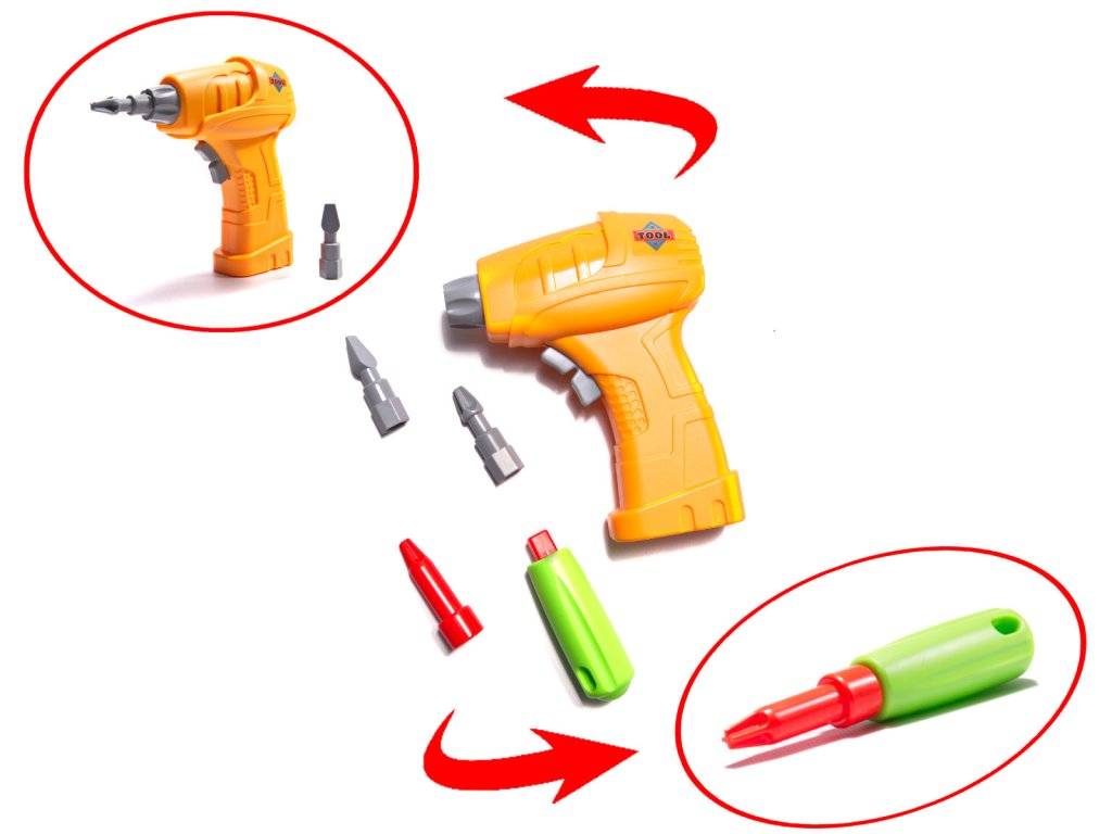 Po vložení baterií a spuštění šroubováku se točí jako skutečný přístroj.