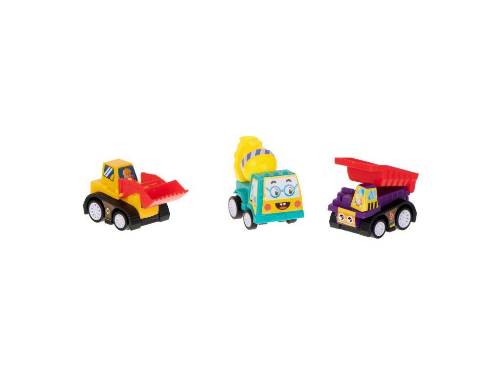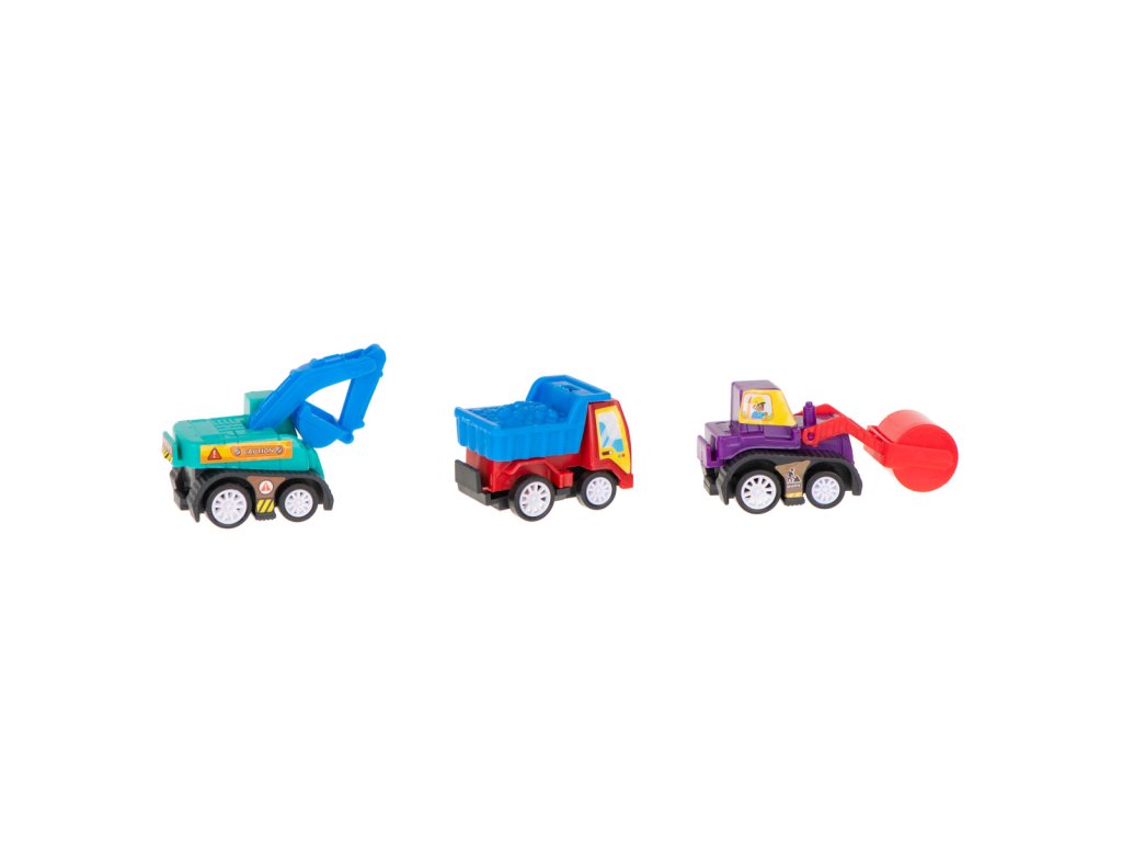 Tato sada 6 mini stavebních autíček s pohonem je ideální pro malé fanoušky bagrů, míchaček a náklaďáků. Každé autíčko má pohybující se část – míchačka se otáčí, bagr zvedá rameno, buldozer tlačí před sebou, a sklápěčka vyklápí náklad.