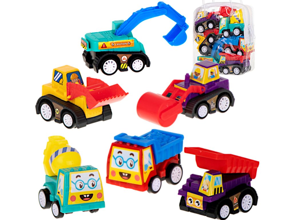 Sada stavebních autíček – 6 kusů malých vozidel s pohyblivými částmi