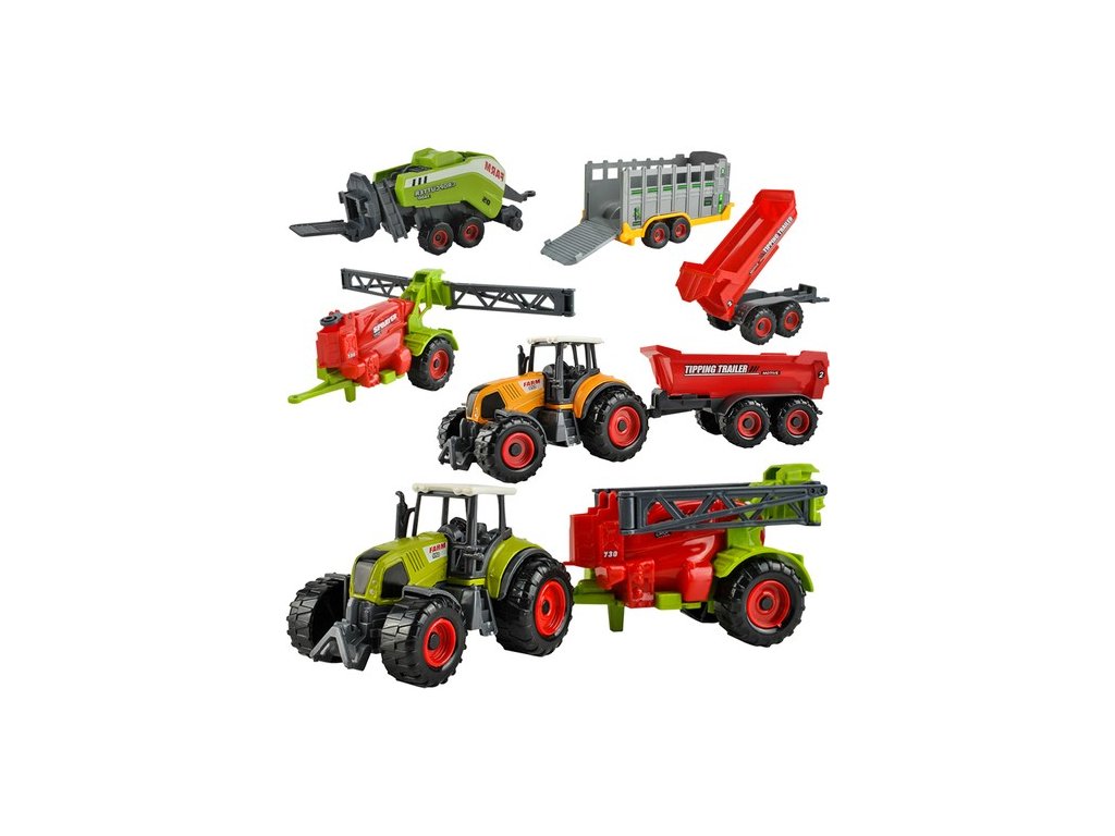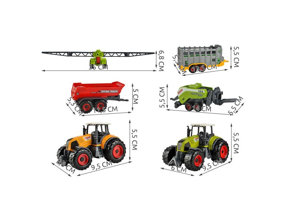 - SPECIFIKACE - věk 3+; hmotnost sady 300 g; sada obsahuje 2 traktory, přívěs pro přepravu zvířat, sklápěčku, postřikovač a lis.