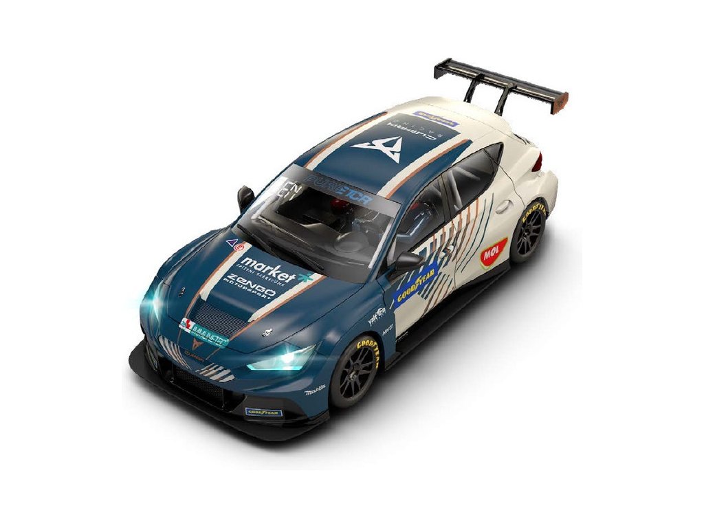 Dráhové autíčko SCX Advance Cupra ETCR Gene v měřítku 1:32, s osvětlením pro digitální autodráhy SCX Advance. Verze 2.0.