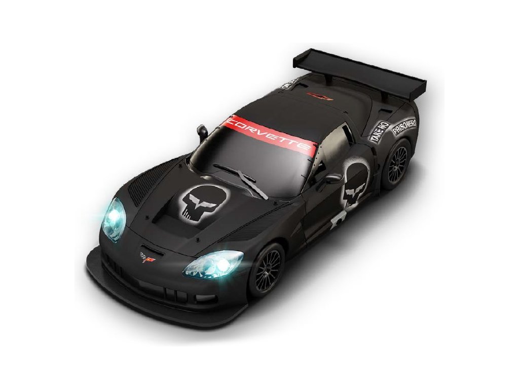 Dráhové autíčko SCX Compact Corvette C6R Black v měřítku 1:43, pro autodráhy SCX Compact. Autíčko je vybaveno LED světly.