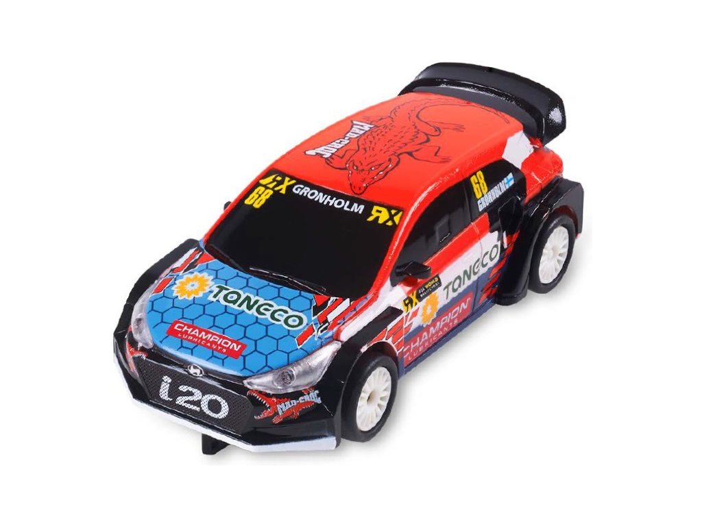Dráhové autíčko SCX Compact Hyundai i-20 RX KwikFit v měřítku 1:43, pro autodráhy SCX Compact. Autíčko je vybaveno LED světly.