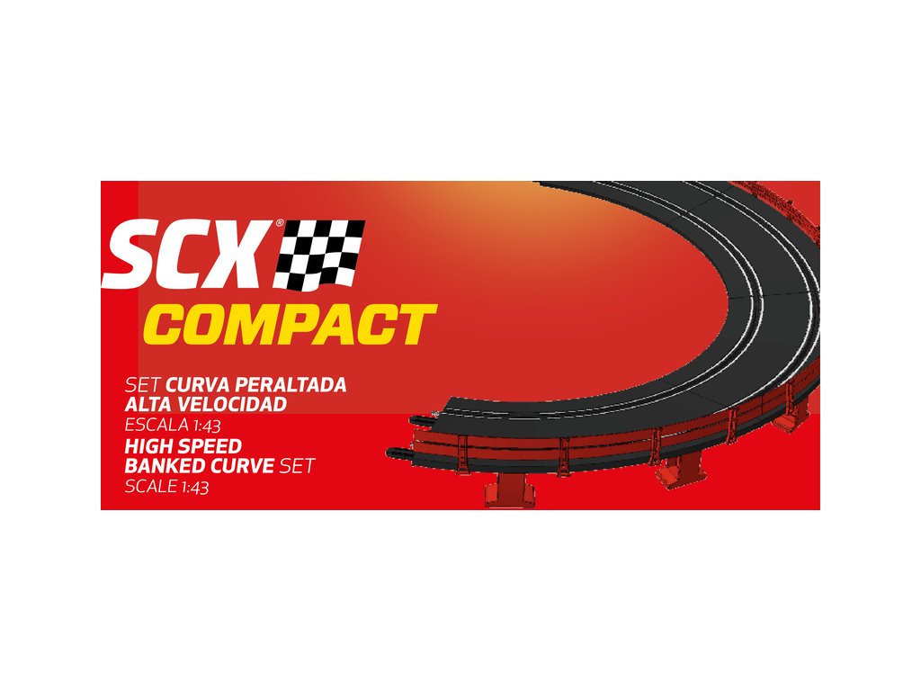 SCX Compact - Klopená zatáčka sada - balení obsahuje 4x zatáčku, 3x podpěru a 4x svodidla. Sada pro rozšíření autodráhy SCX Compact v měřítku 1:43.